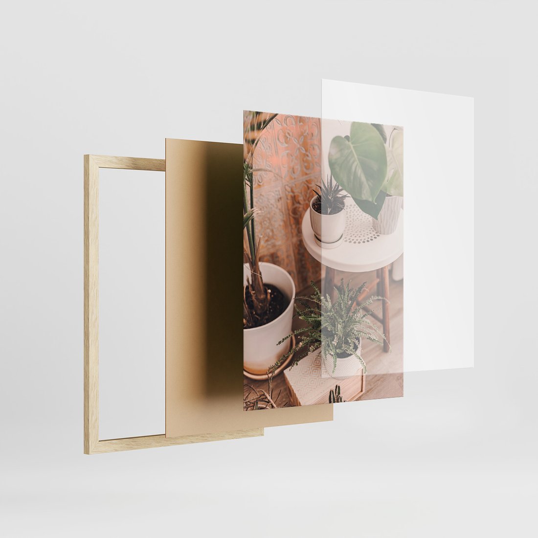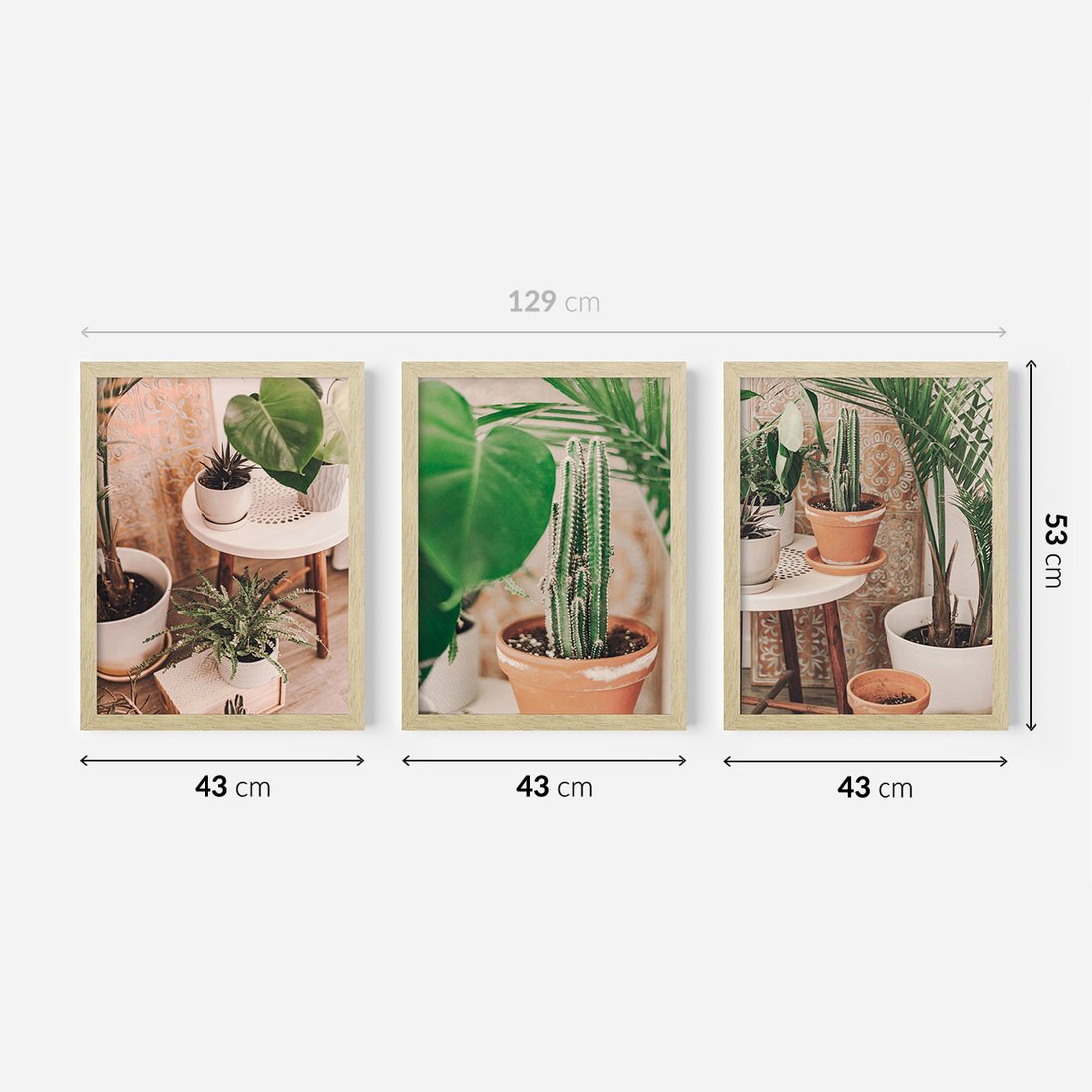 Zestaw obrazy w ramie 40x50 galeria - Kwiaty, kaktusy, w, doniczkach, boho - rama drewno