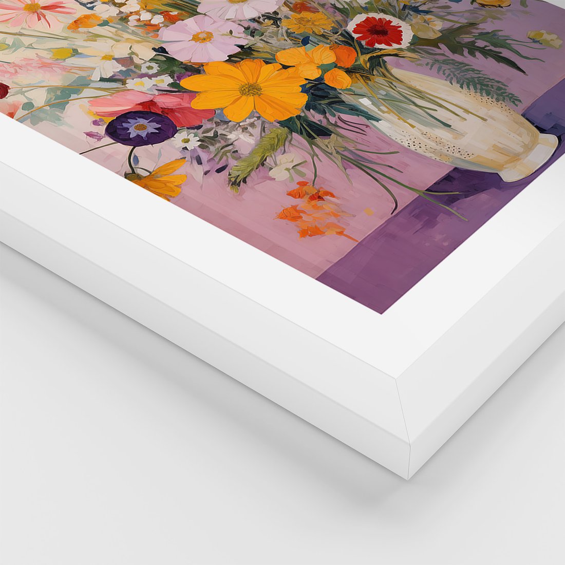 Zestaw obrazy w ramie 40x50 galeria - kwiaty, wazon, akwarela, pastele - rama biała