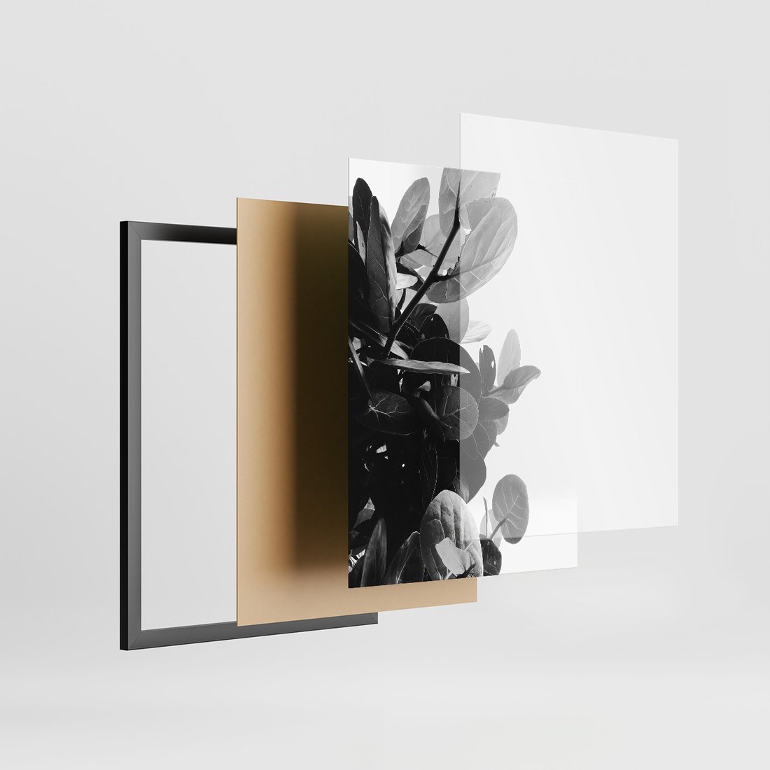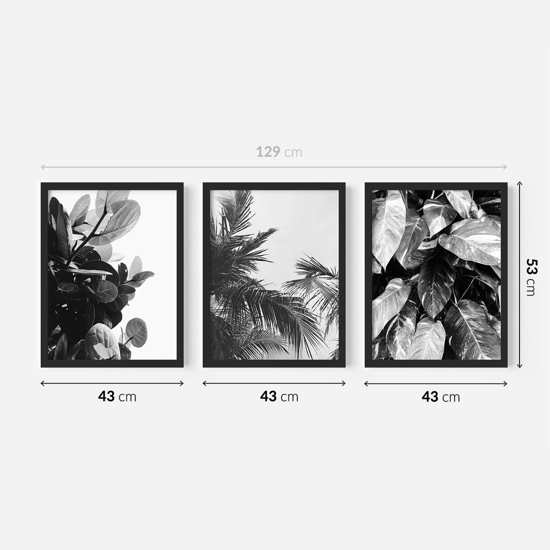 Zestaw obrazy w ramie 40x50 galeria - Liście, czarno, białe, palmy - rama czarna