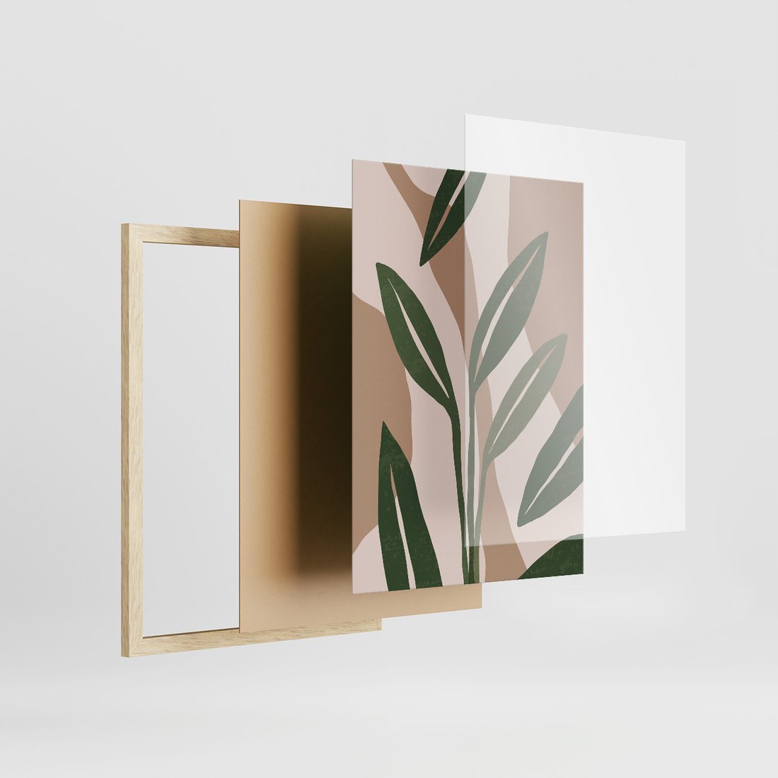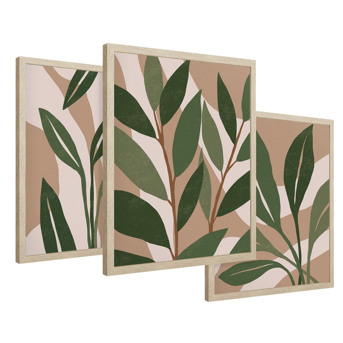 Zestaw obrazy w ramie 40x50 galeria - Liście, graficzne, boho - rama drewno