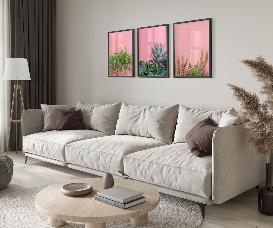 Zestaw obrazy w ramie 40x50 galeria - Liście, kaktusy, rośliny, pastele, retro - rama czarna