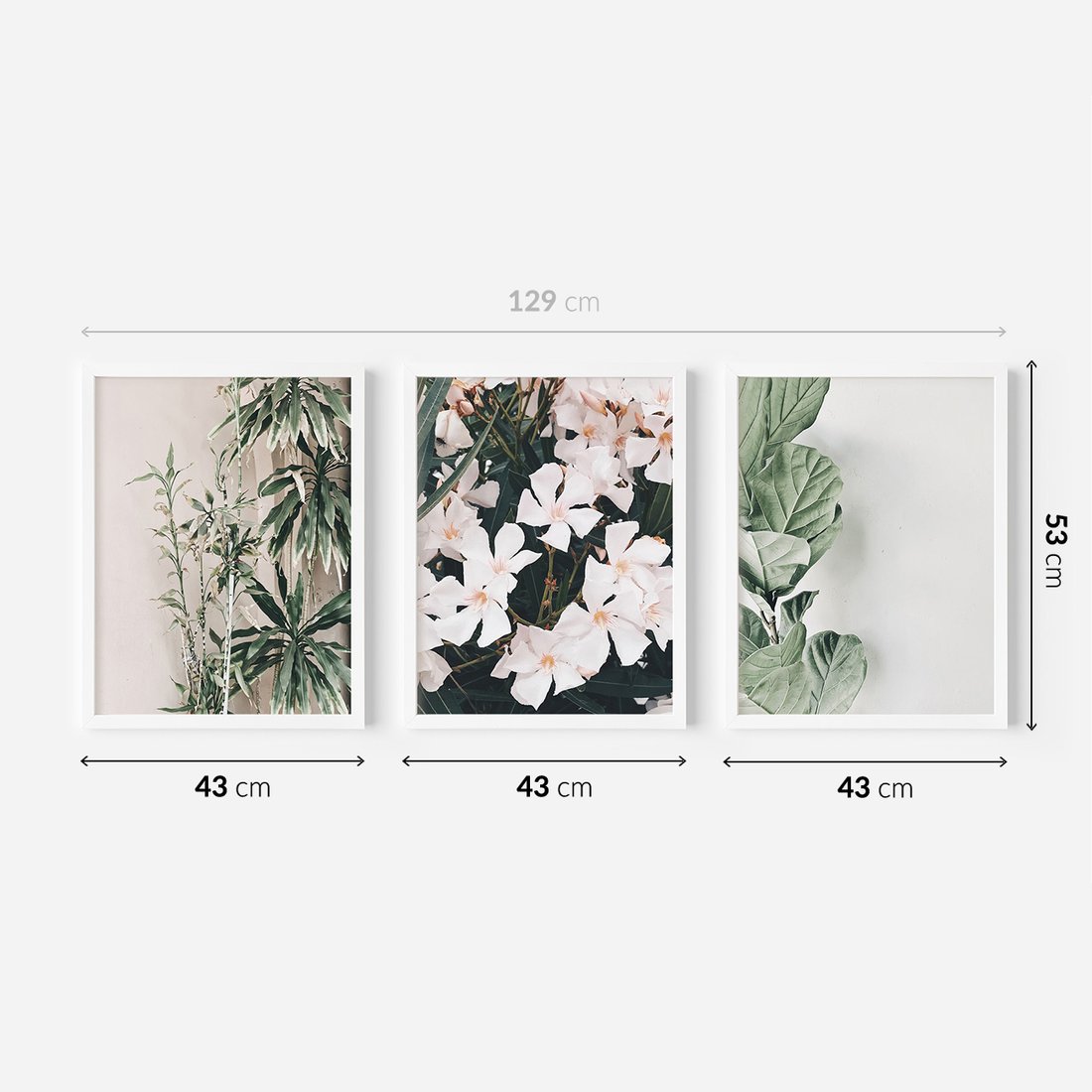 Zestaw obrazy w ramie 40x50 galeria - Liście, kwiaty, nowoczesny, styl - rama biała