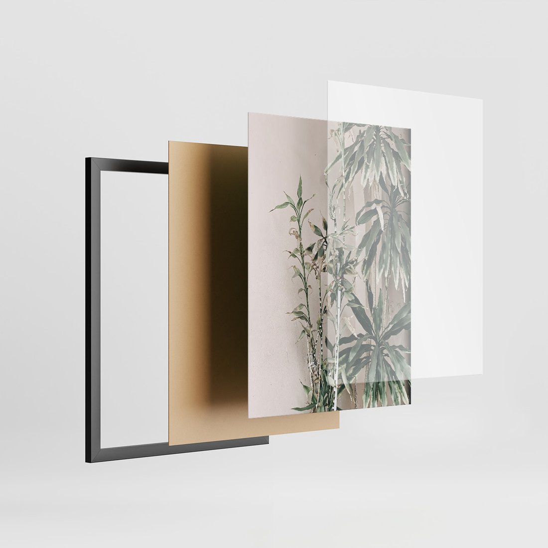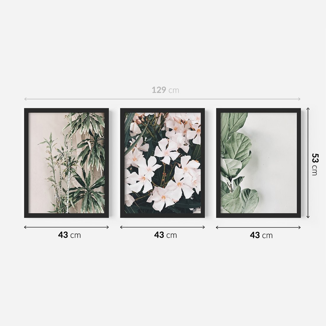 Zestaw obrazy w ramie 40x50 galeria - Liście, kwiaty, nowoczesny, styl - rama czarna
