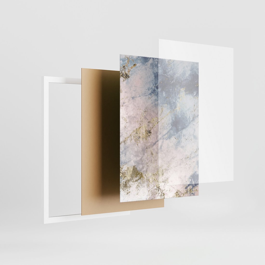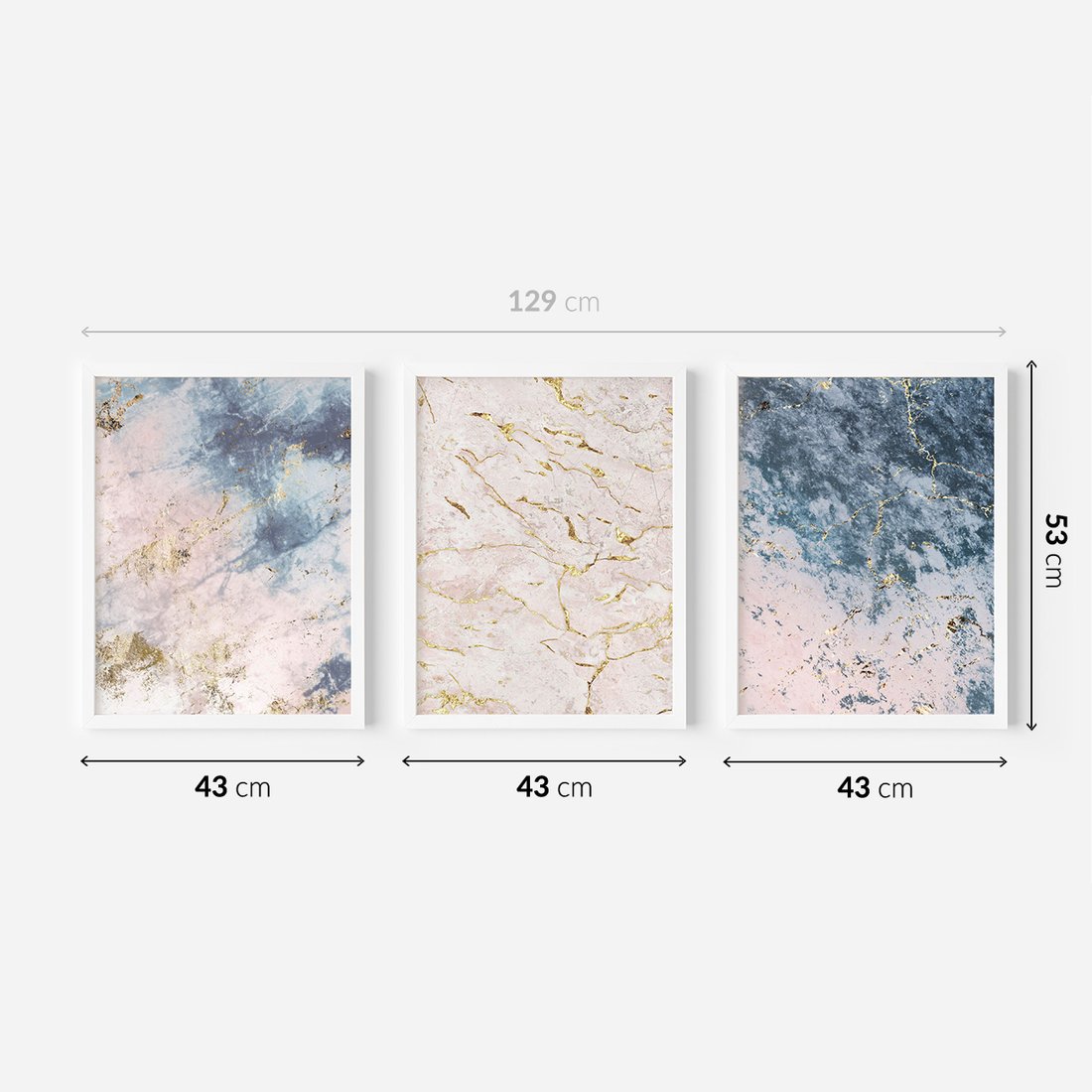 Zestaw obrazy w ramie 40x50 galeria - Marmur, złoto, błękit, turkus - rama biała