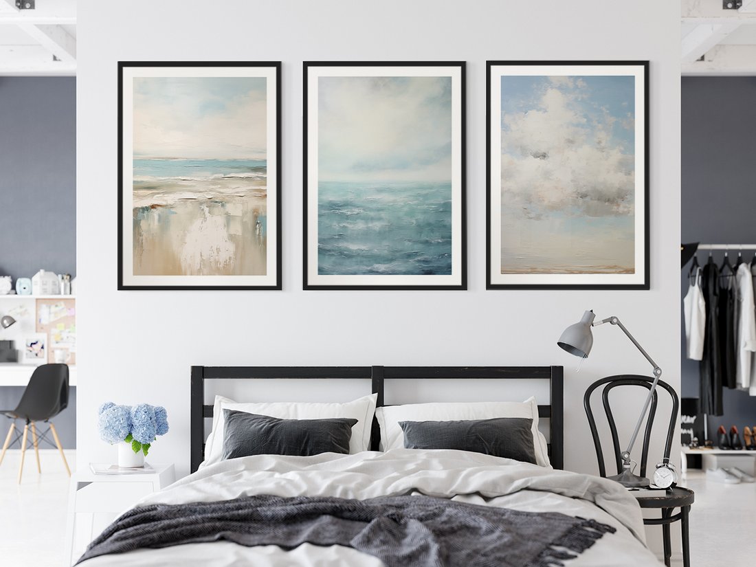 Zestaw obrazy w ramie 40x50 galeria - morze, niebo, akwarela, plaża - rama czarna
