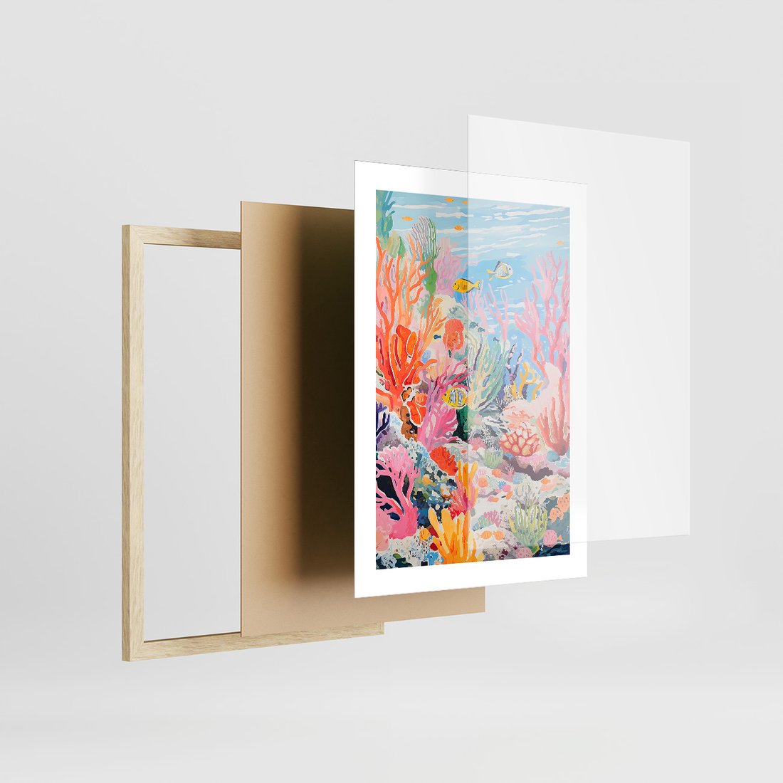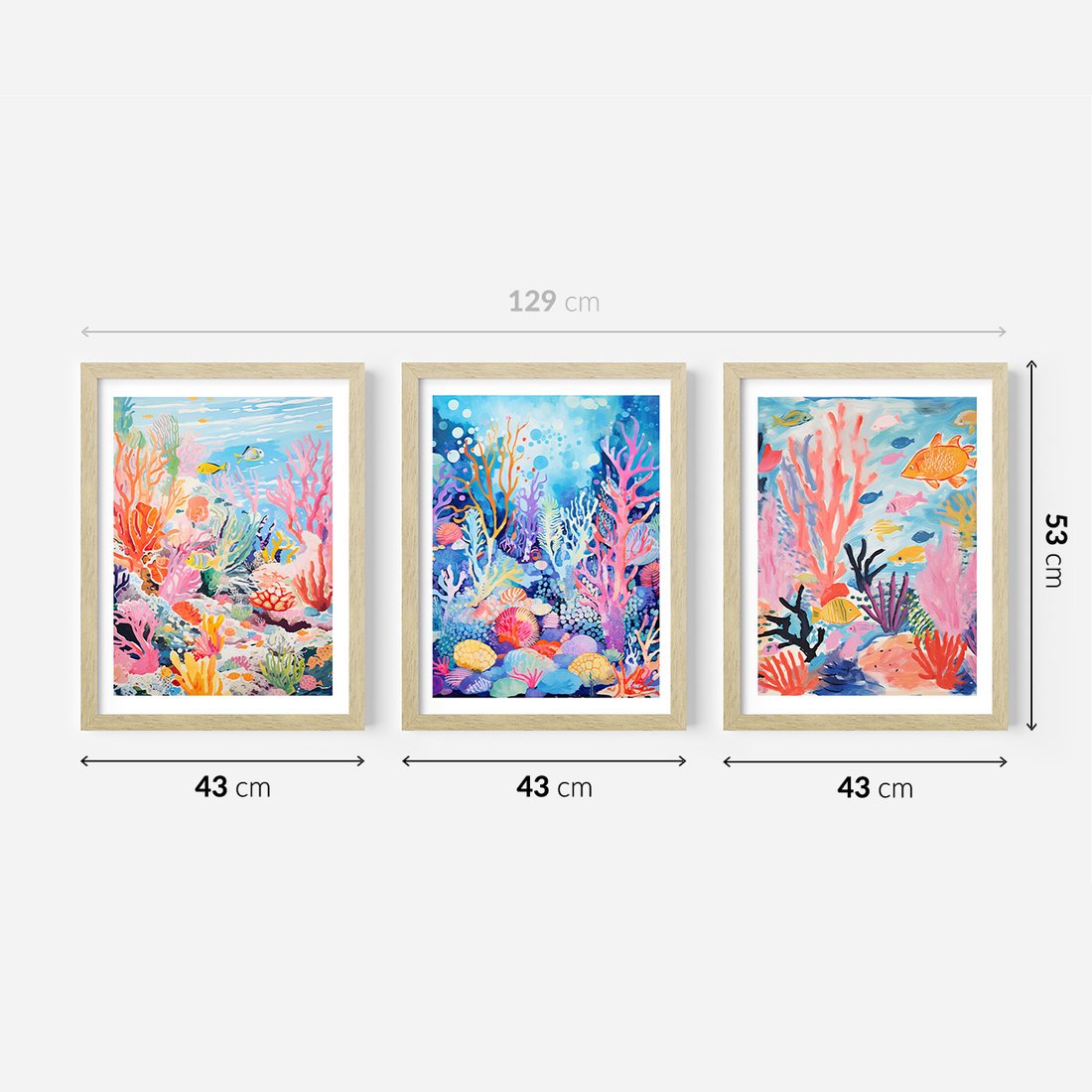 Zestaw obrazy w ramie 40x50 galeria - morze, rybki, akwarela, rafa, koralowa - rama drewno