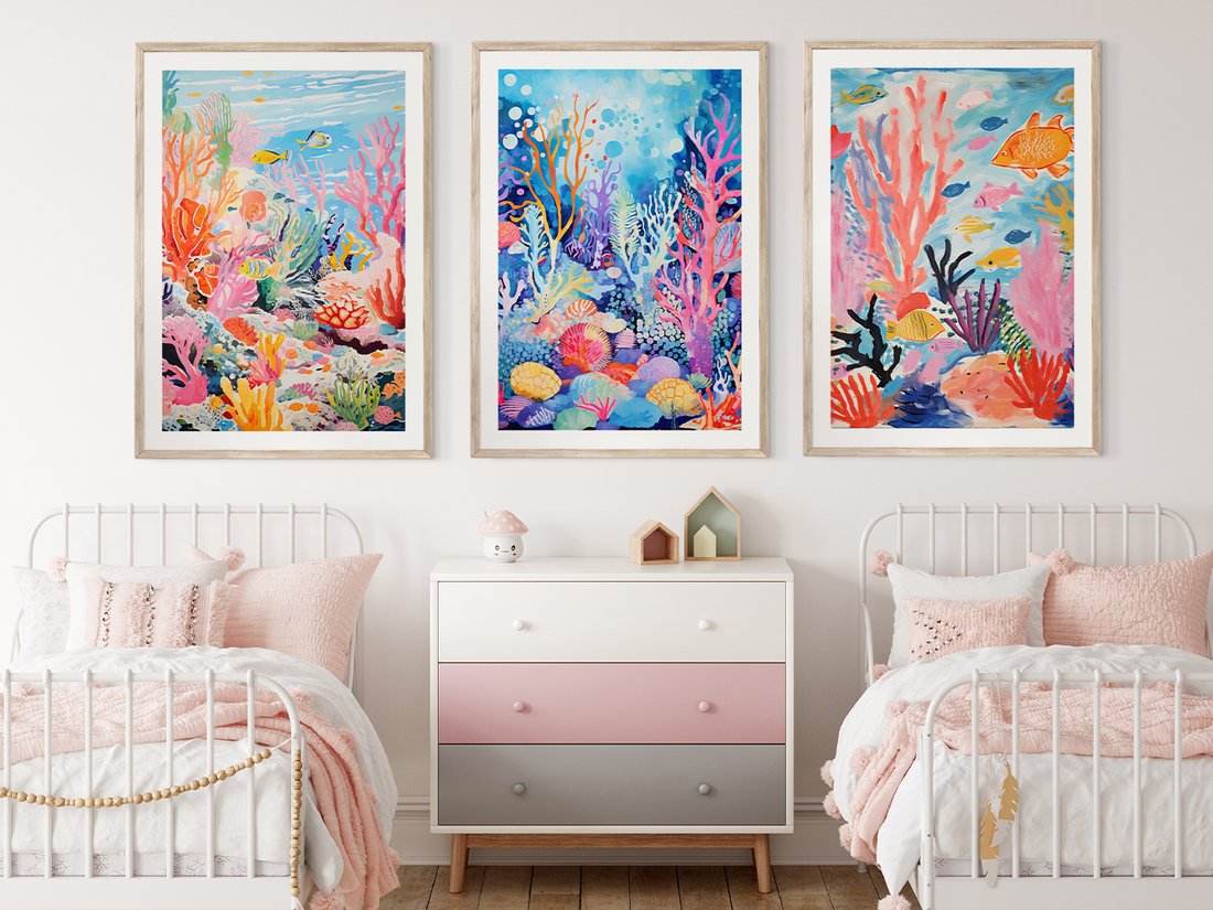 - Zestaw obrazów 40x50 - morze, rybki, akwarela, rafa, koralowa