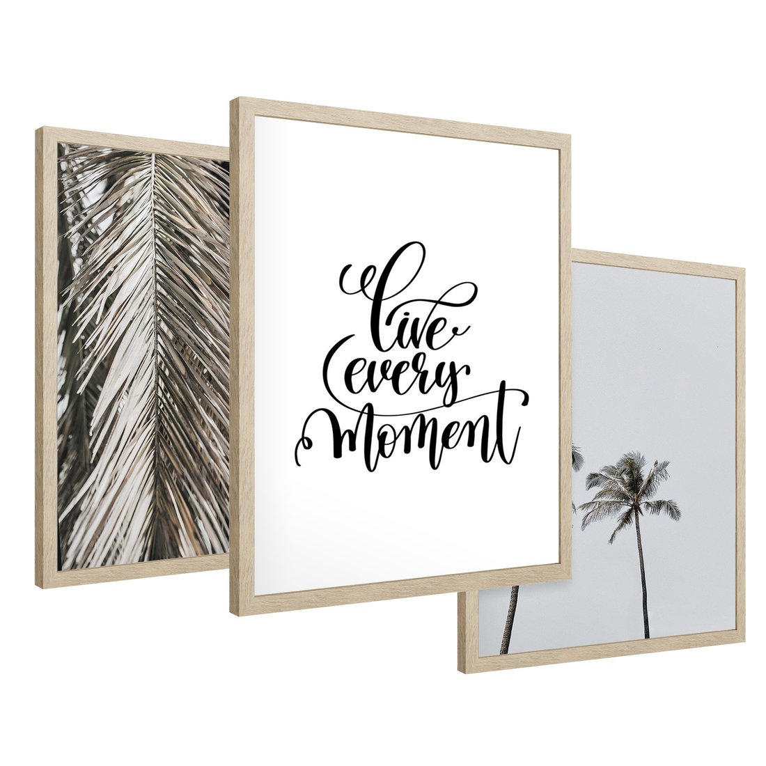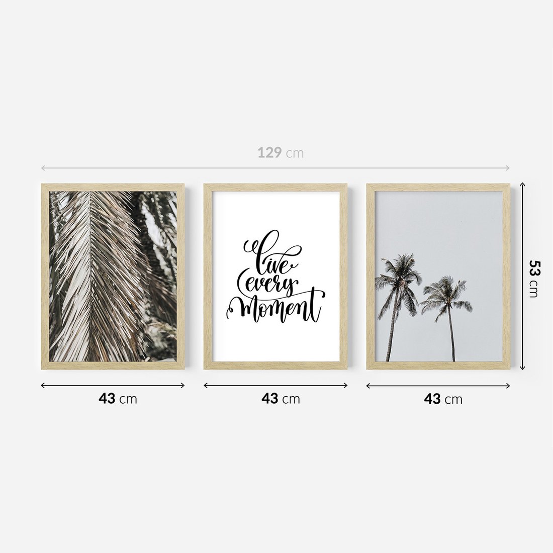 Zestaw obrazy w ramie 40x50 galeria - Pozytywny, cytat, palmy, wakacje - rama drewno