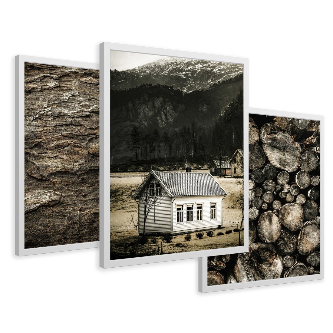 • Zestaw obrazów 40x50 - Sepia, domek, w, górach