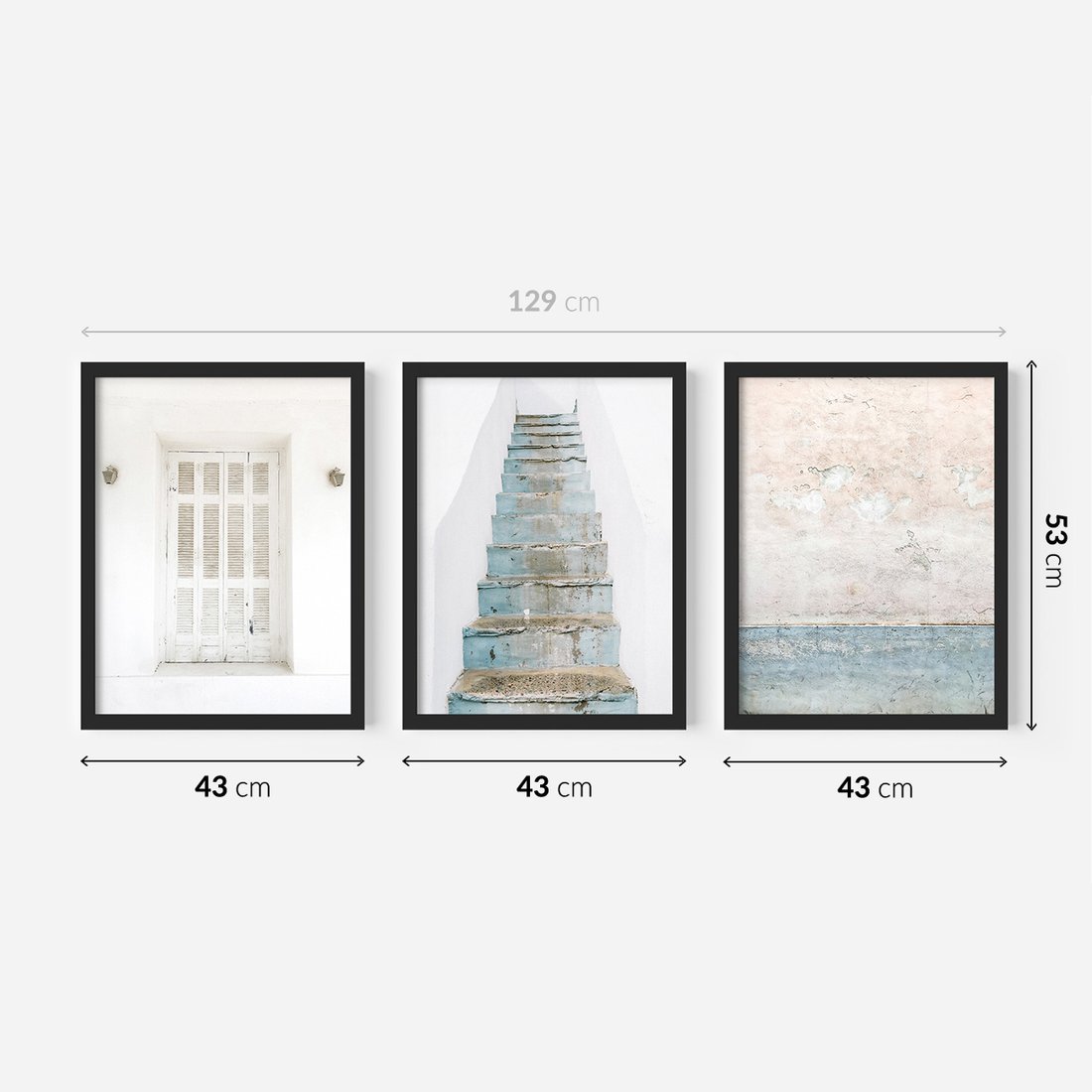Zestaw obrazy w ramie 40x50 galeria - Turkus, Grecja, schody, okiennice - rama czarna
