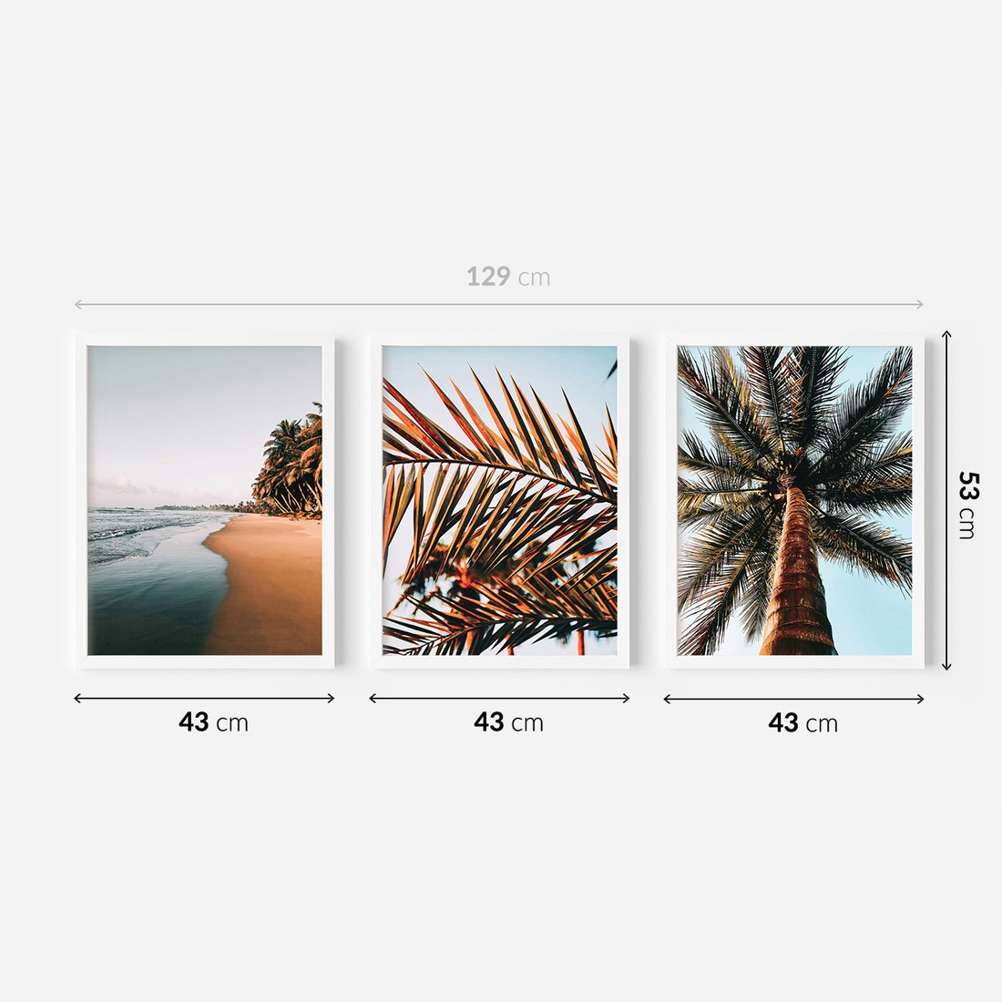 Zestaw obrazy w ramie 40x50 galeria - Zachód, słońca, plaża, morze, palmy - rama biała