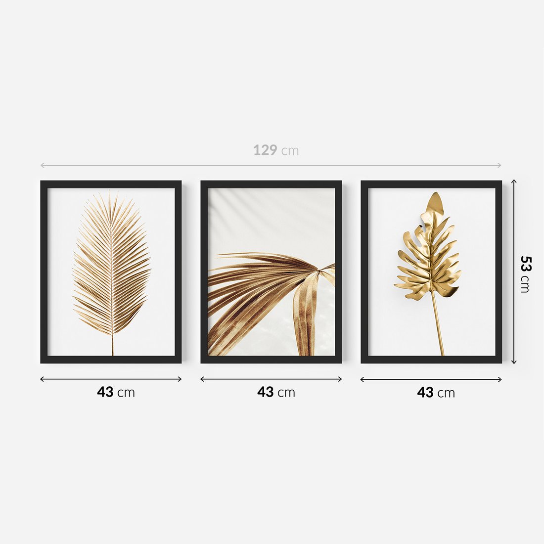 Zestaw obrazy w ramie 40x50 galeria - Złote, palmy, liście, tropikalne, minimalizm - rama czarna