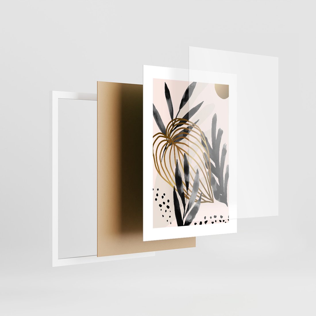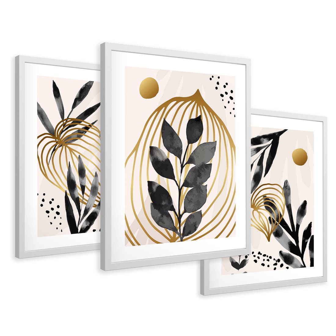 Zestaw obrazy w ramie 40x50 galeria - Złoto, liście, akwarele - rama biała