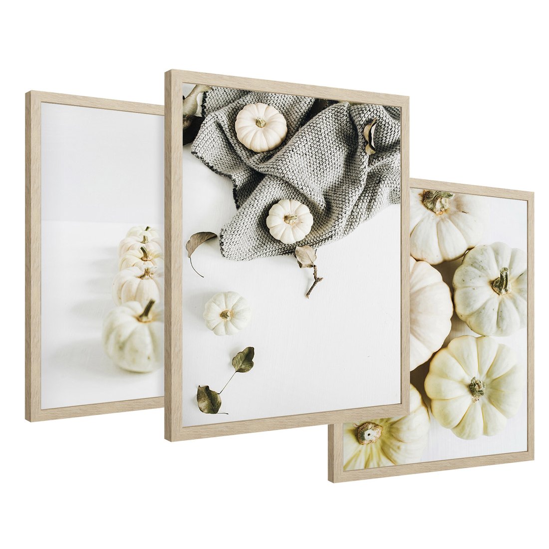 Zestaw obrazy w ramie 50x70 galeria - Białe, dynie, minimalizm - rama drewno