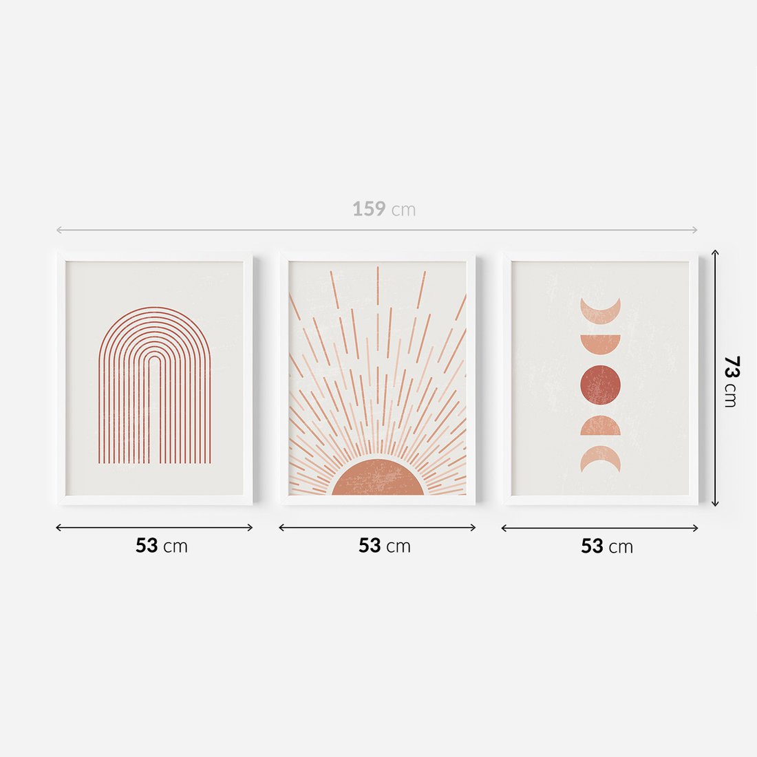 Zestaw obrazy w ramie 50x70 galeria - Boho, słońce, graficzne - rama biała