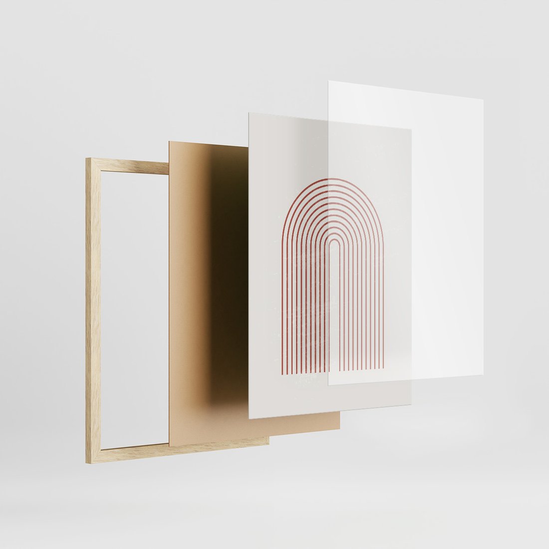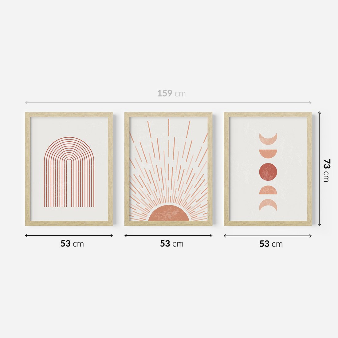 Zestaw obrazy w ramie 50x70 galeria - Boho, słońce, graficzne - rama drewno