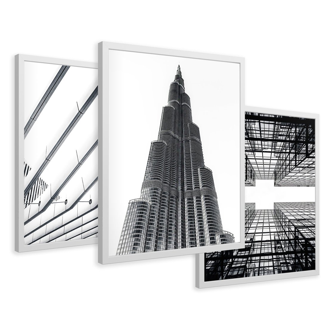 Zestaw obrazy w ramie 50x70 galeria - Budynki, wieżowce, miasto - rama biała