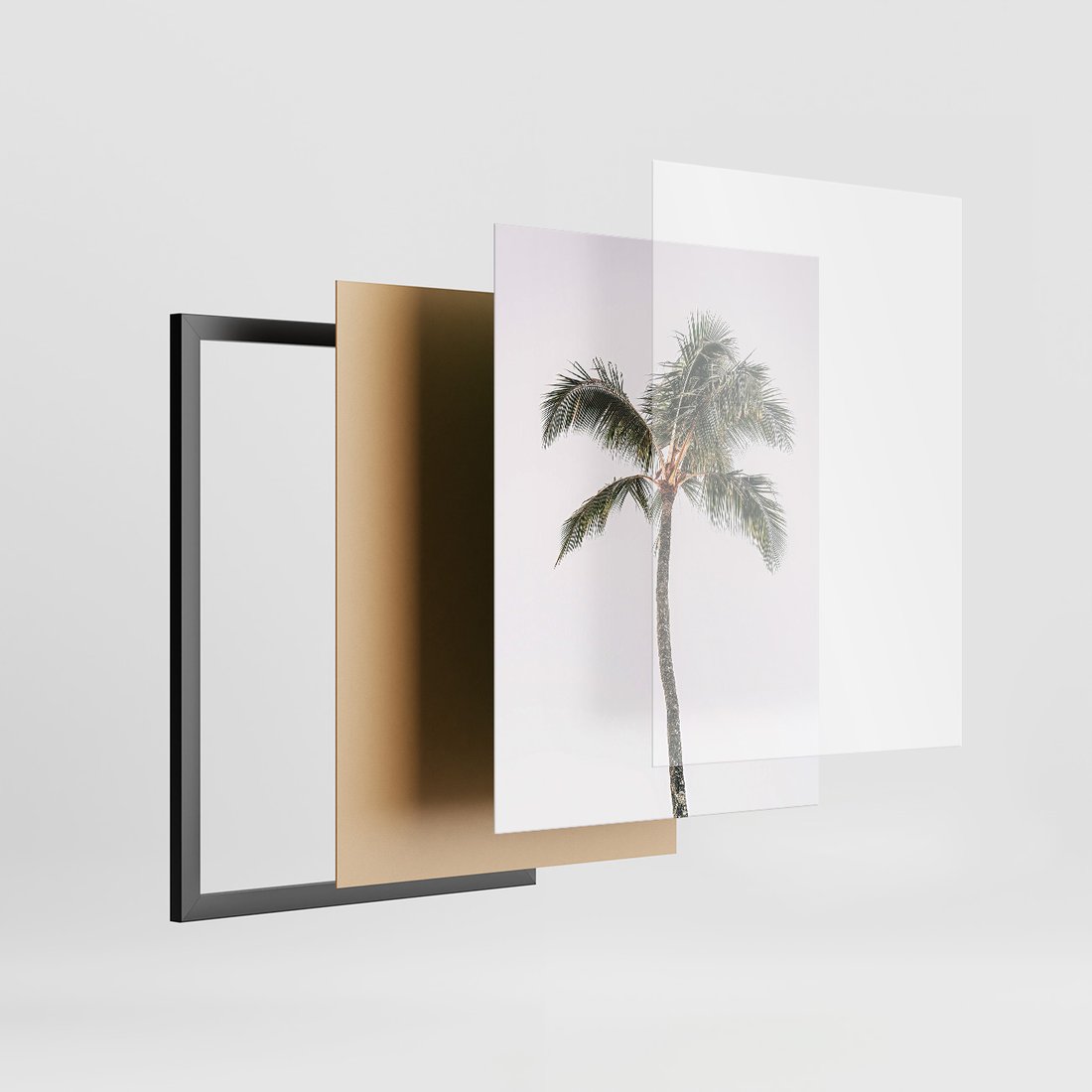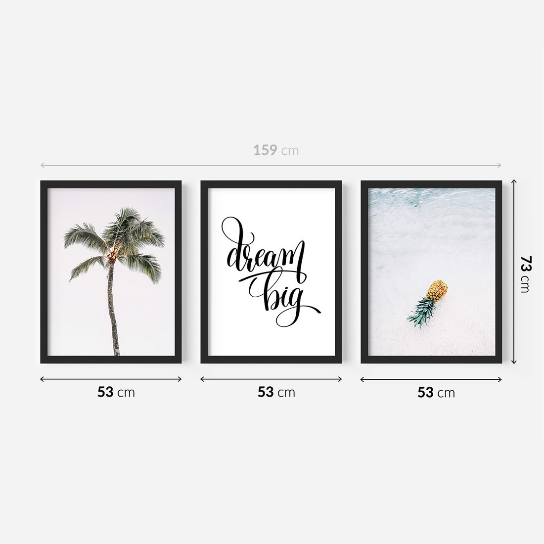 Zestaw obrazy w ramie 50x70 galeria - Cytat, motywacja, plaża, palma - rama czarna