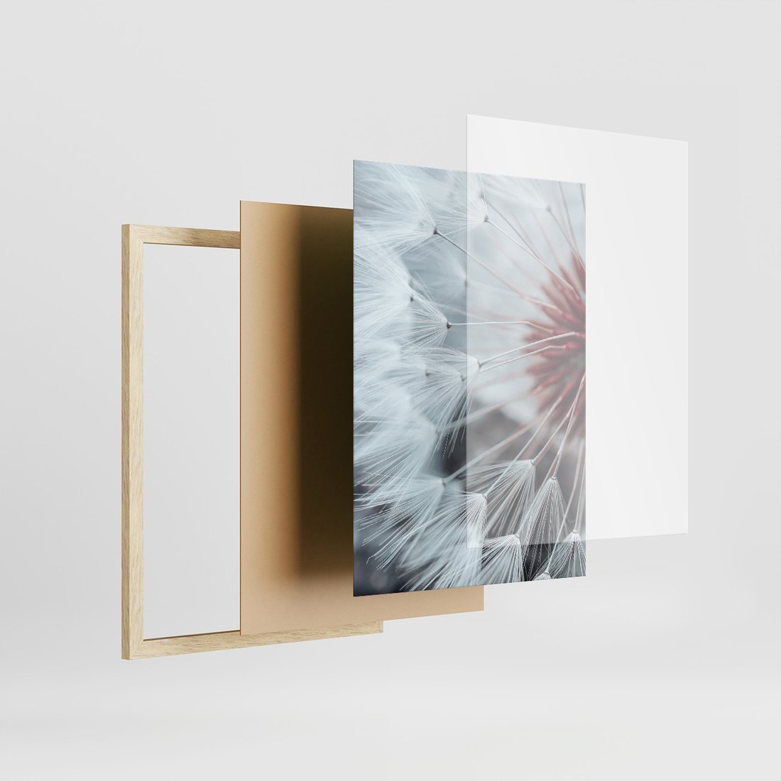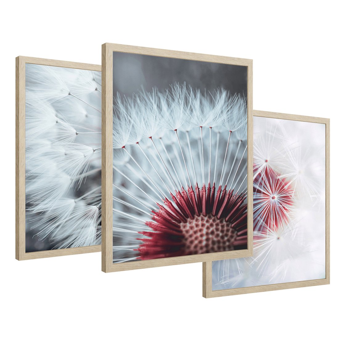 Zestaw obrazy w ramie 50x70 galeria - Dmuchawiec, makro, nowoczesny, styl - rama drewno