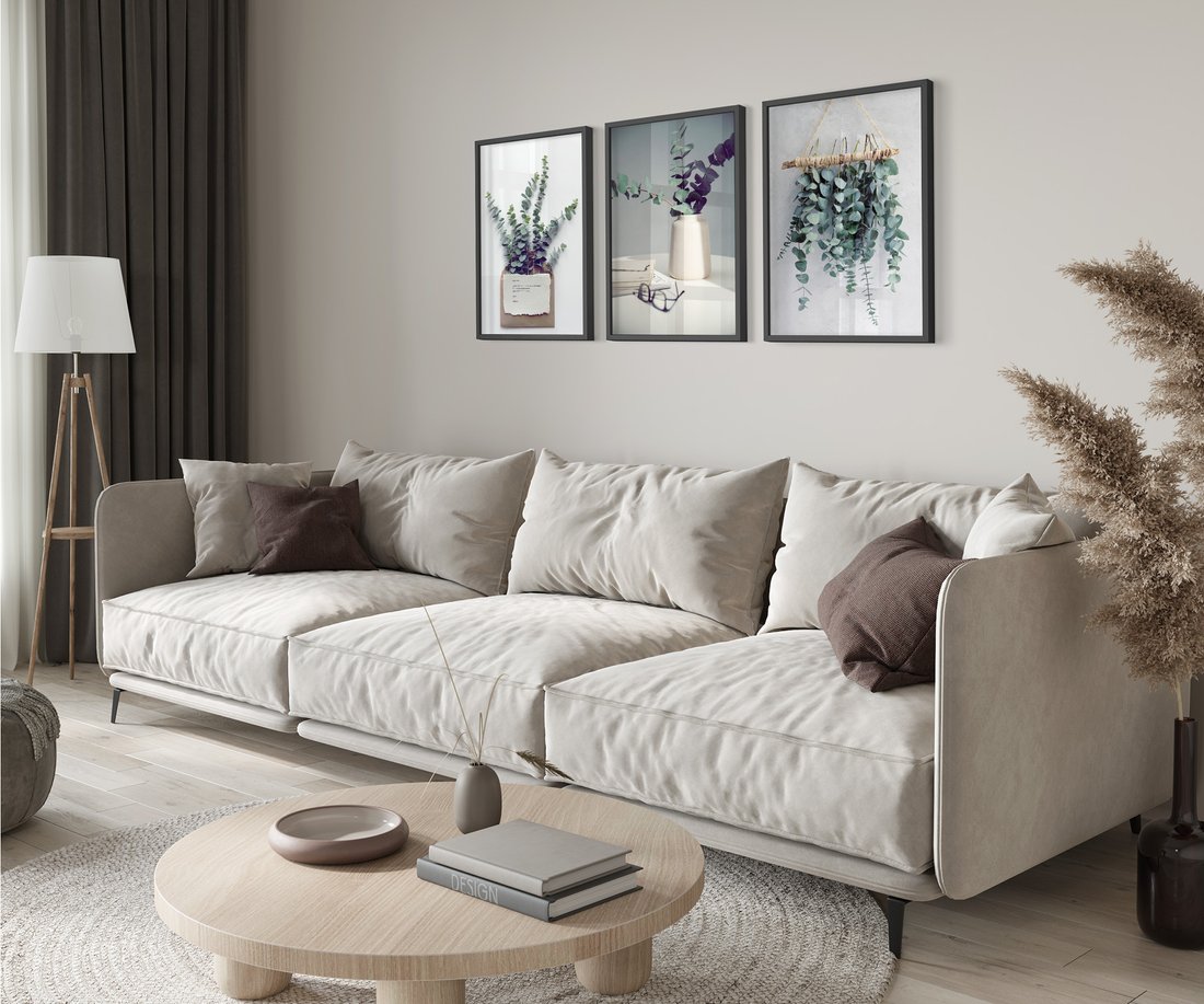 - Zestaw obrazów 50x70 - Eukaliptus, liście, tryptyk, skandynawski