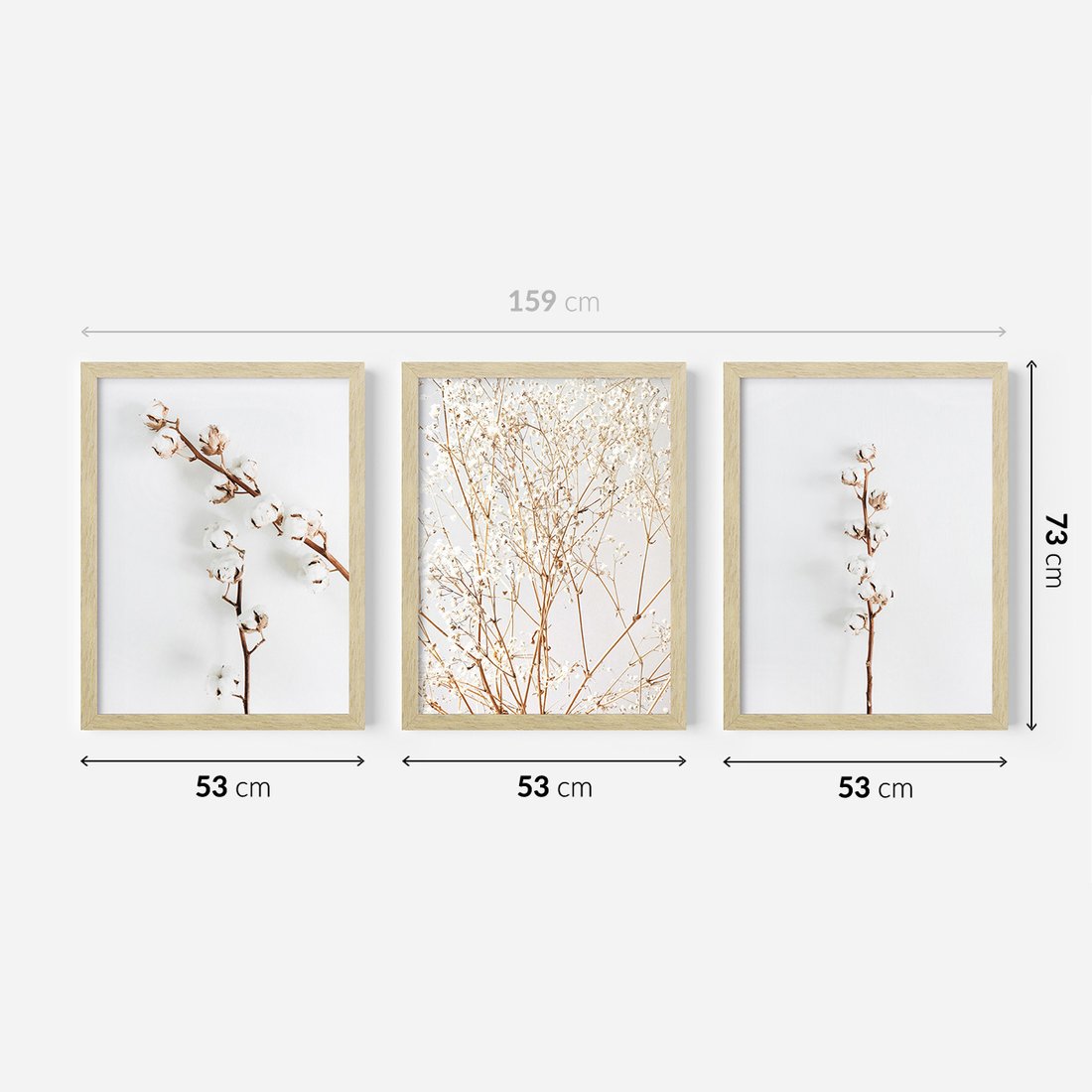 - Zestaw obrazów 50x70 - Gipsówka, bawełna, kwiaty, susz