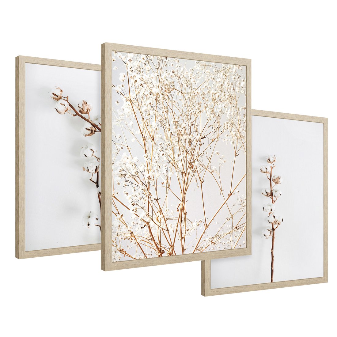 Zestaw obrazy w ramie 50x70 galeria - Gipsówka, bawełna, kwiaty, susz - rama drewno
