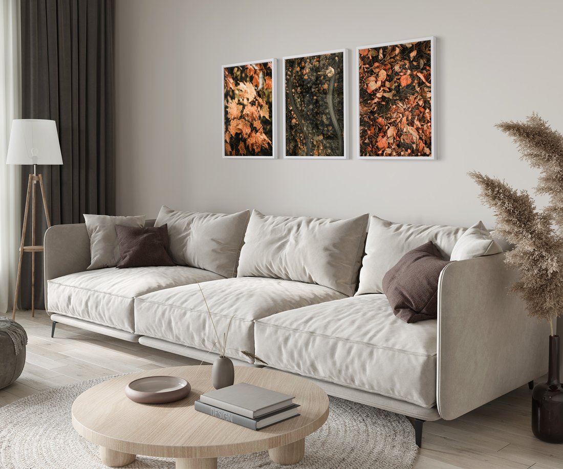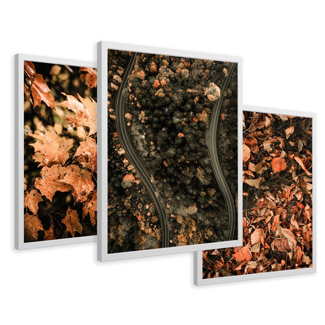 Zestaw obrazy w ramie 50x70 galeria - Jesień, liście, droga - rama biała