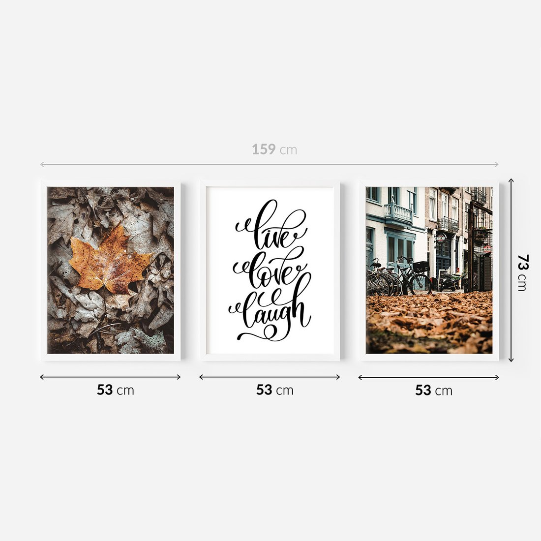 Zestaw obrazy w ramie 50x70 galeria - Jesień, rower, typografia, napis - rama biała
