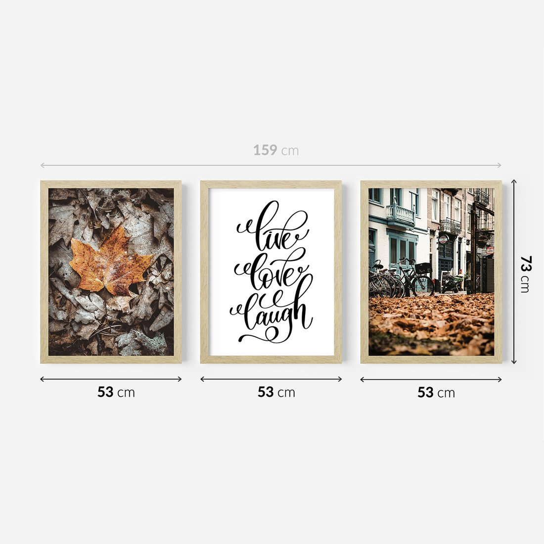 Zestaw obrazy w ramie 50x70 galeria - Jesień, rower, typografia, napis - rama drewno
