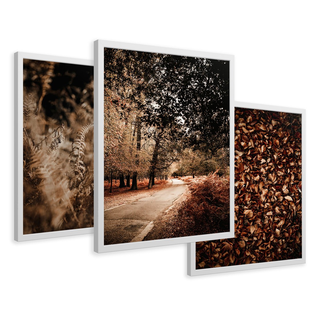 Zestaw obrazy w ramie 50x70 galeria - Jesienne, liście, nostalgia - rama biała