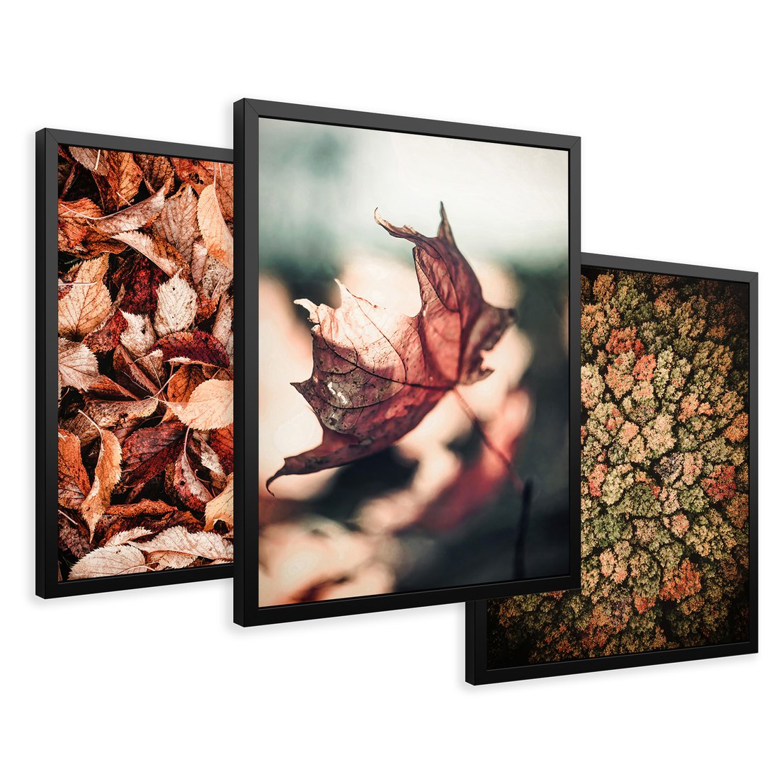 Zestaw obrazy w ramie 50x70 galeria - Jesienny, las, liście - rama czarna