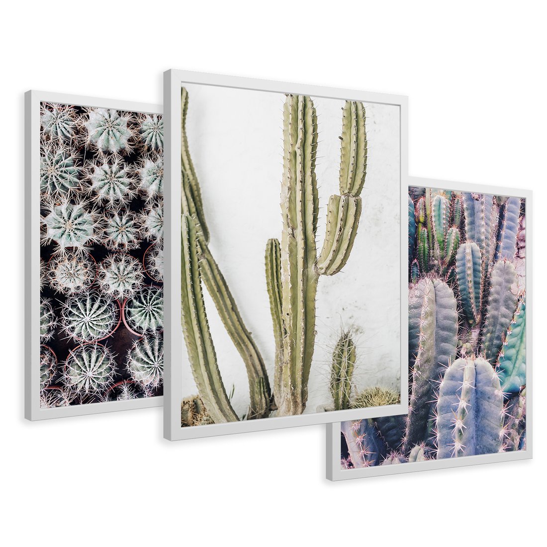 Zestaw obrazy w ramie 50x70 galeria - Kaktusy, liście, boho - rama biała