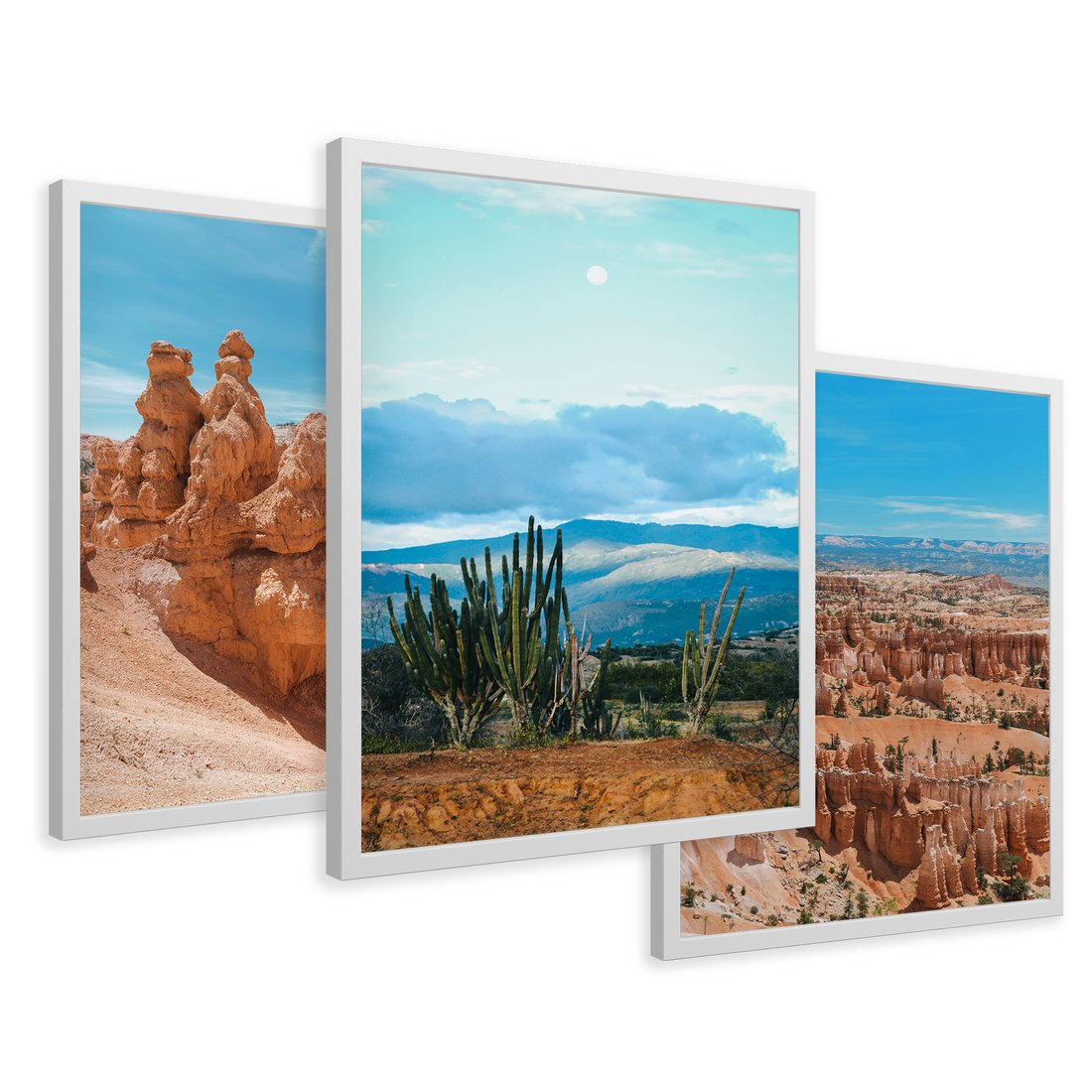 Zestaw obrazy w ramie 50x70 galeria - Kanion, pustynia, widok, pejzaż - rama biała