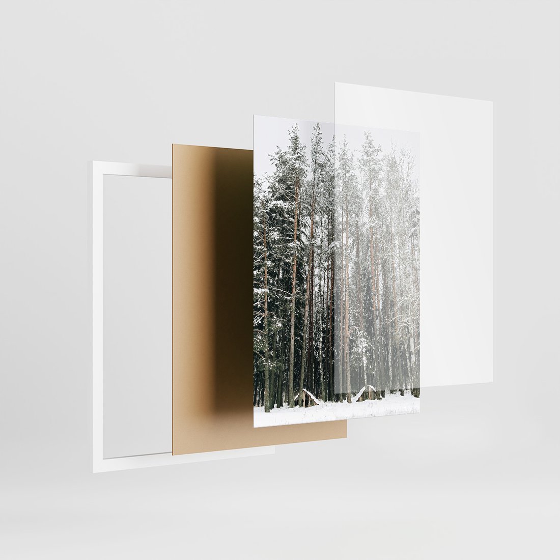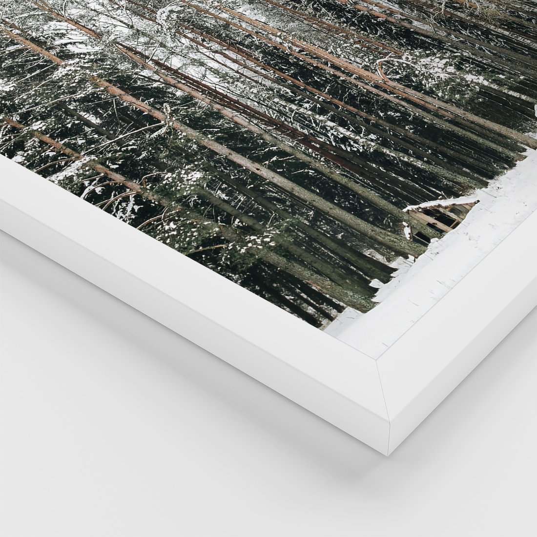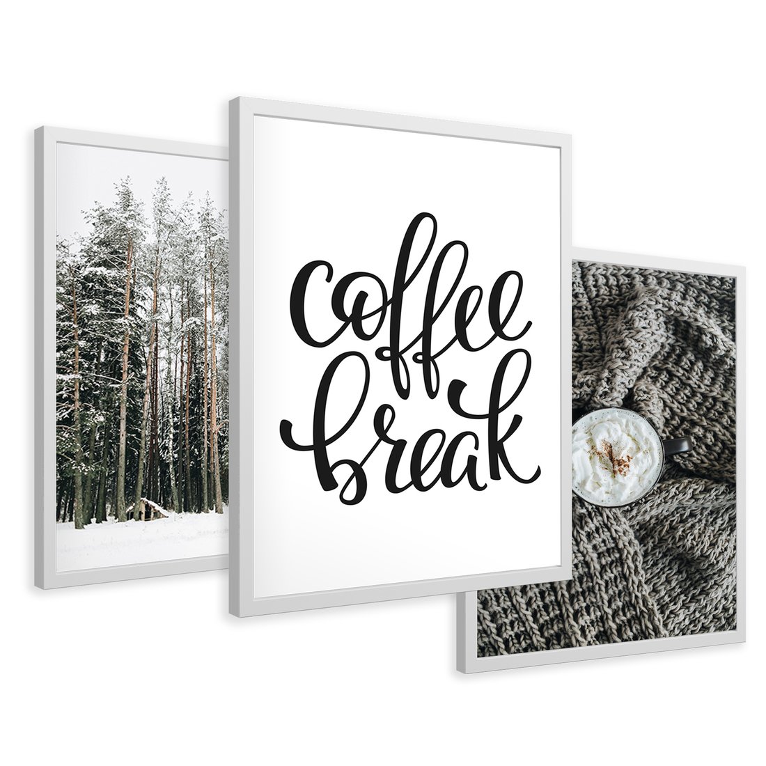 Zestaw obrazy w ramie 50x70 galeria - Kawa, las, zima, przytulnie - rama biała