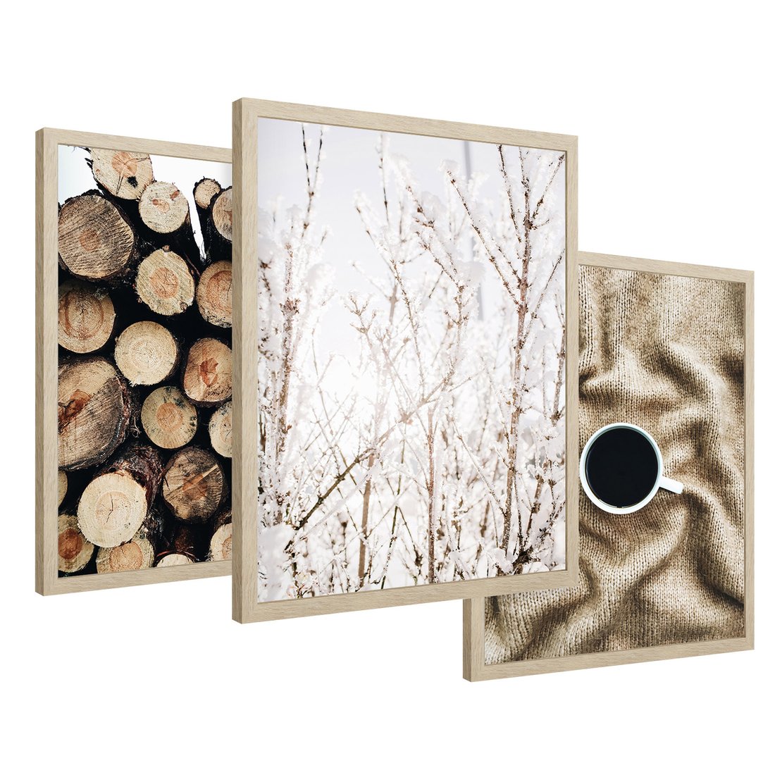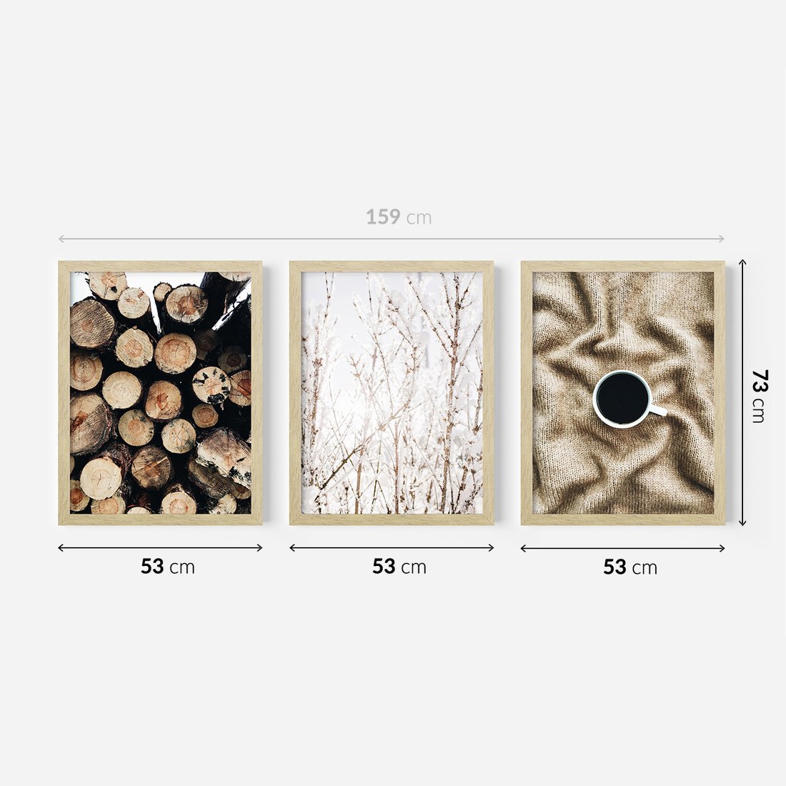 Zestaw obrazy w ramie 50x70 galeria - Kawa, zima, jesień, klimatyczne - rama drewno
