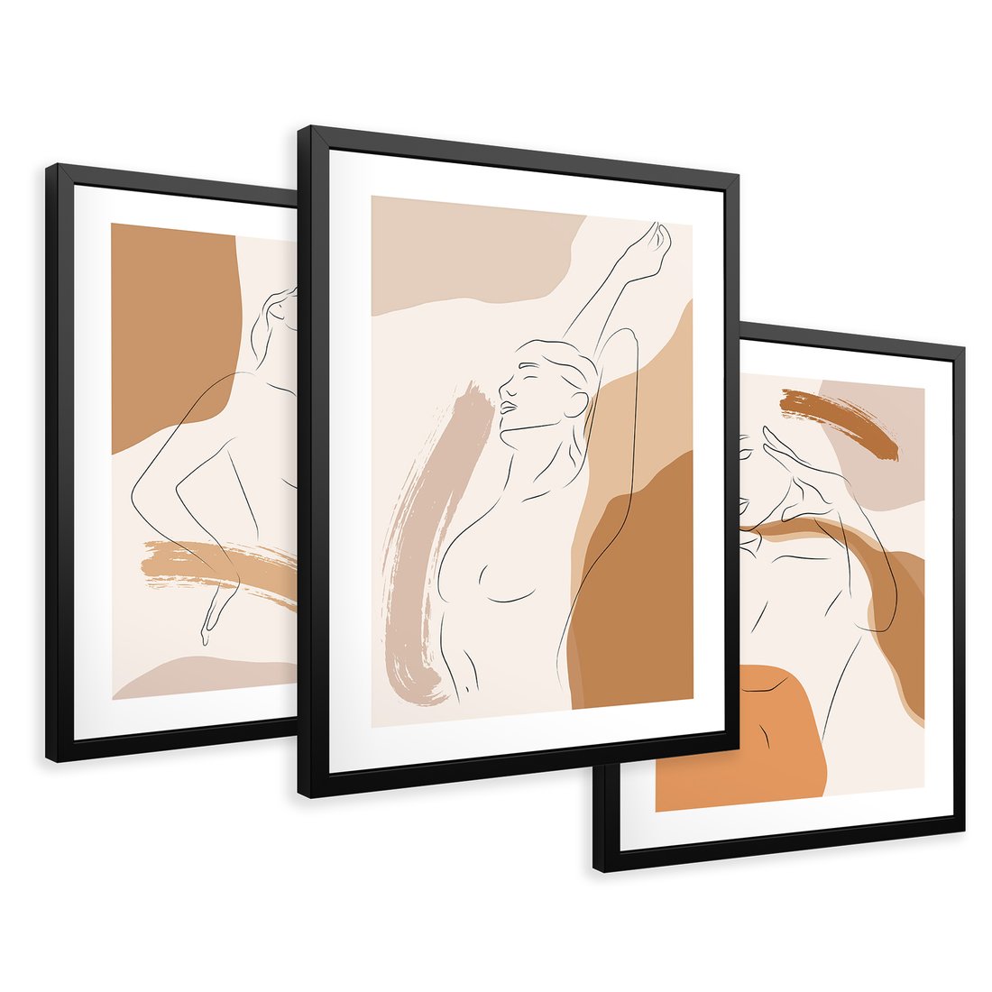 Zestaw obrazy w ramie 50x70 galeria - Kobieta, abstrakcja, one-line, nowoczesny - rama czarna