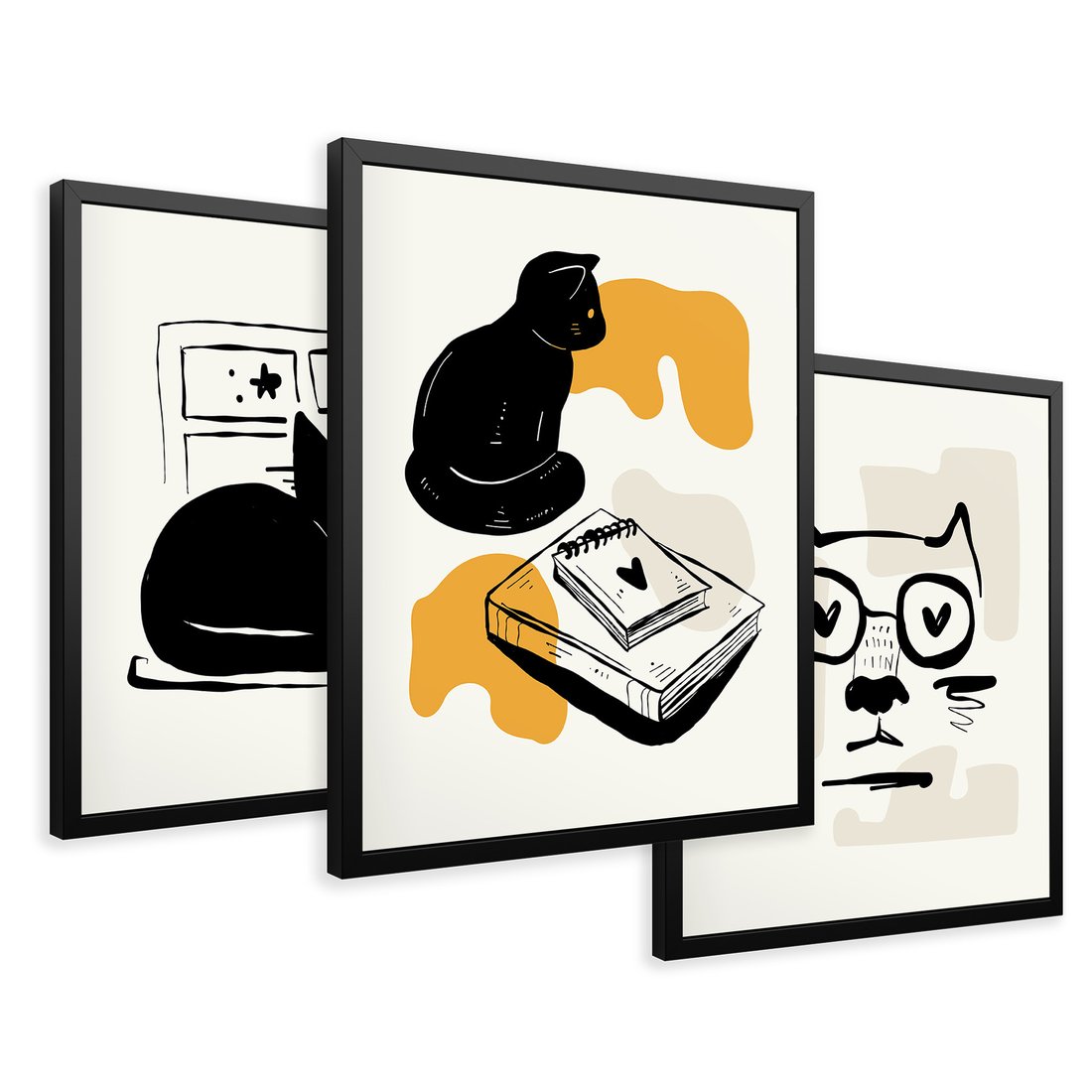 Zestaw obrazy w ramie 50x70 galeria - Koty, abstrakcja, sztuka - rama czarna