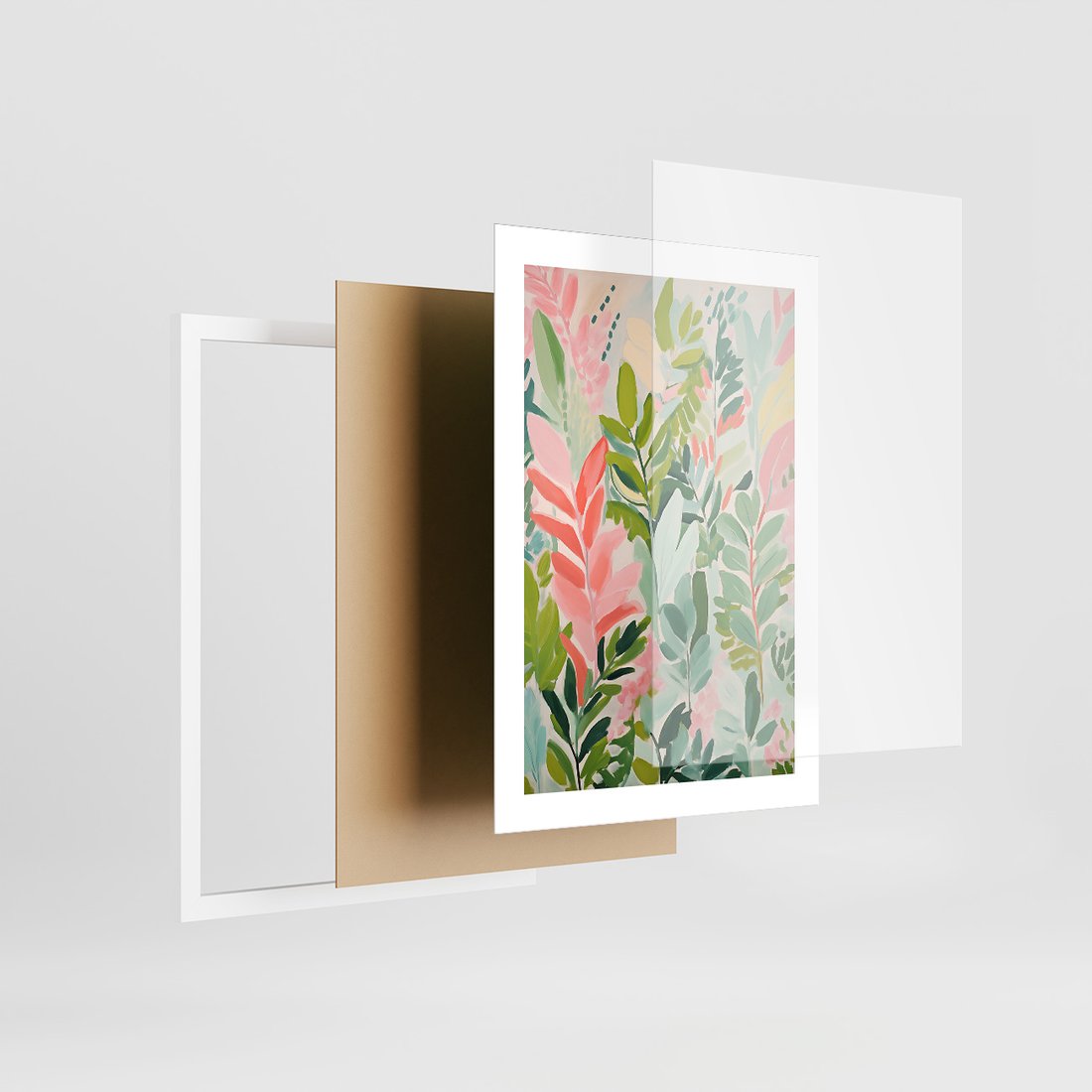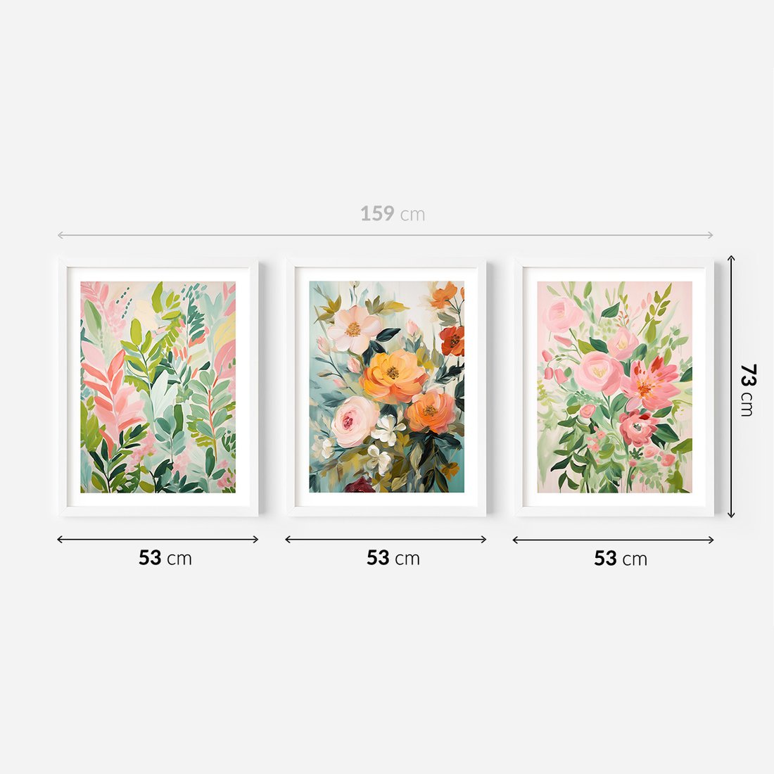 Zestaw obrazy w ramie 50x70 galeria - kwiaty, akwarela, pastele, liście - rama biała
