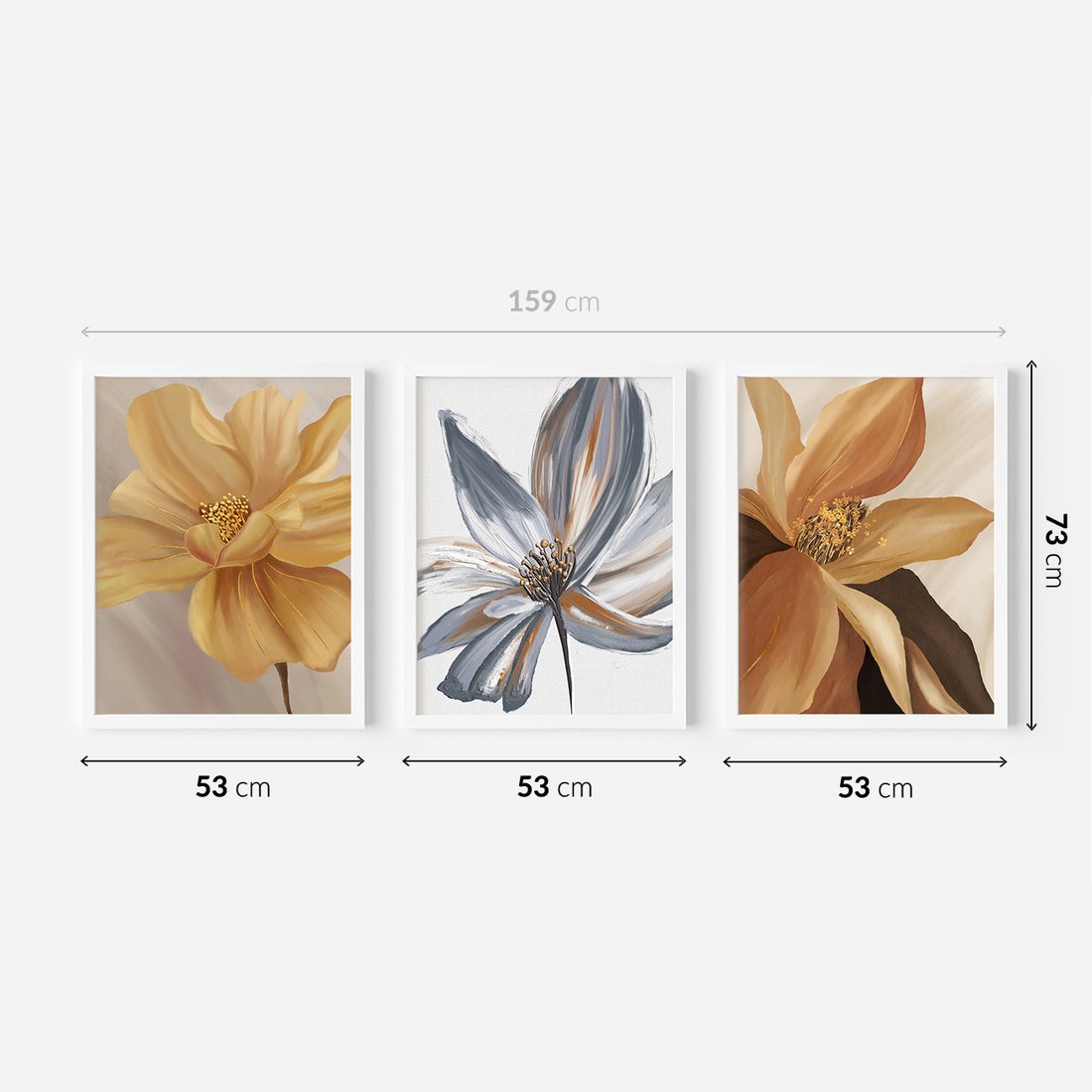 Dodaj elegancji i stylu swojemu wnętrzu dzięki zestawowi starannie wykonanych obrazów w ramie. Ten unikalny komplet to idealne połączenie nowoczesnego designu i ponadczasowego piękna, które doskonale wkomponuje się w każde pomieszczenie. W skład kompletu wchodzą trzy odrębne obrazy, które można zawiesić obok siebie lub rozmieszczać w różnych miejscach, tworząc spersonalizowaną dekorację.