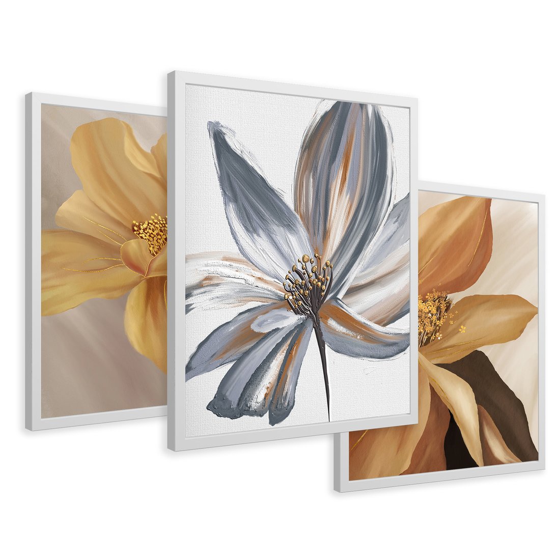 Zestaw obrazy w ramie 50x70 galeria - Kwiaty, jak, obraz, olejny, złoto - rama biała