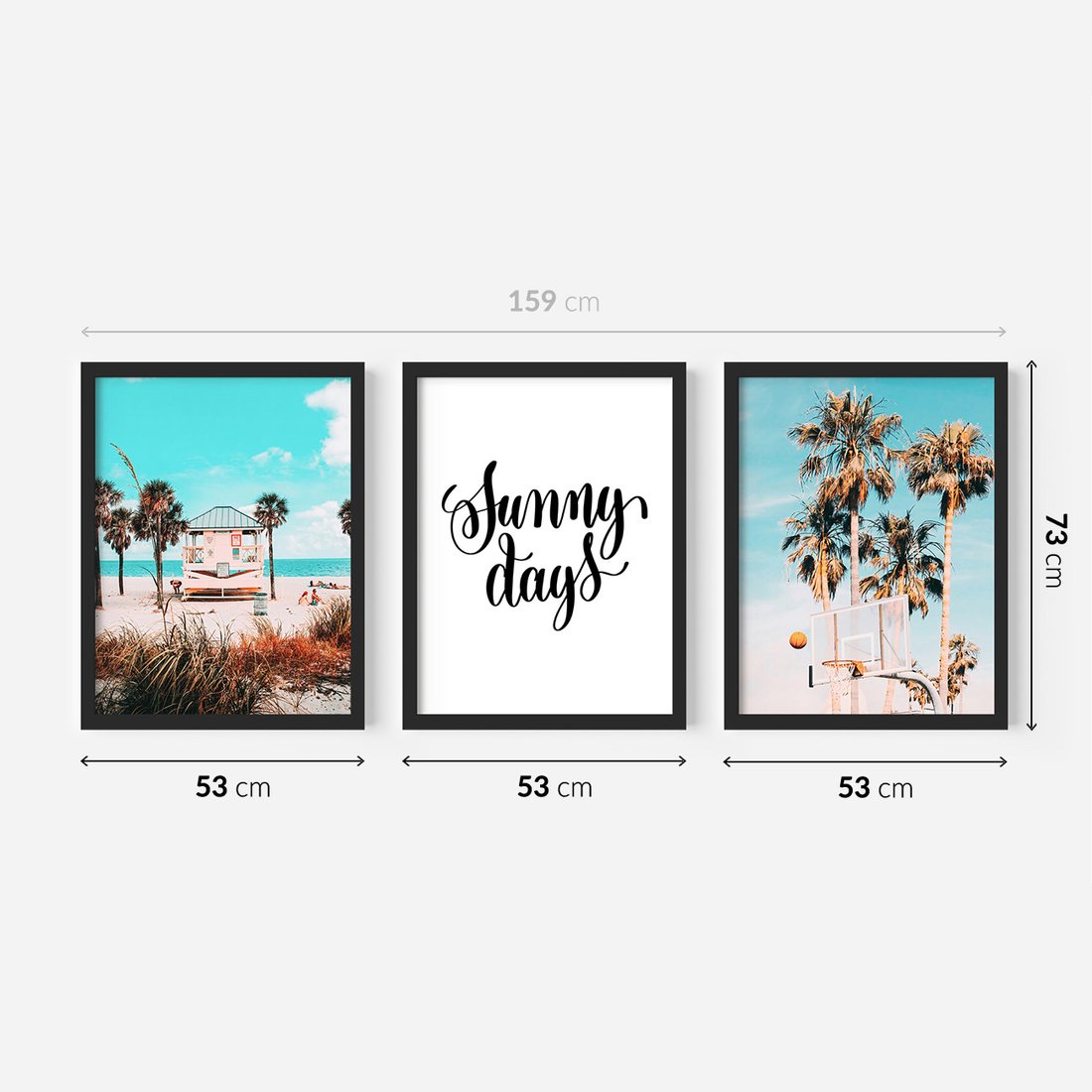 Zestaw obrazy w ramie 50x70 galeria - Lato, wakacje, podróż, napis, tyografia - rama czarna