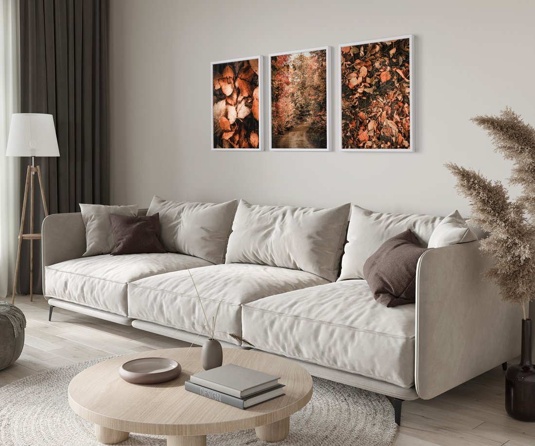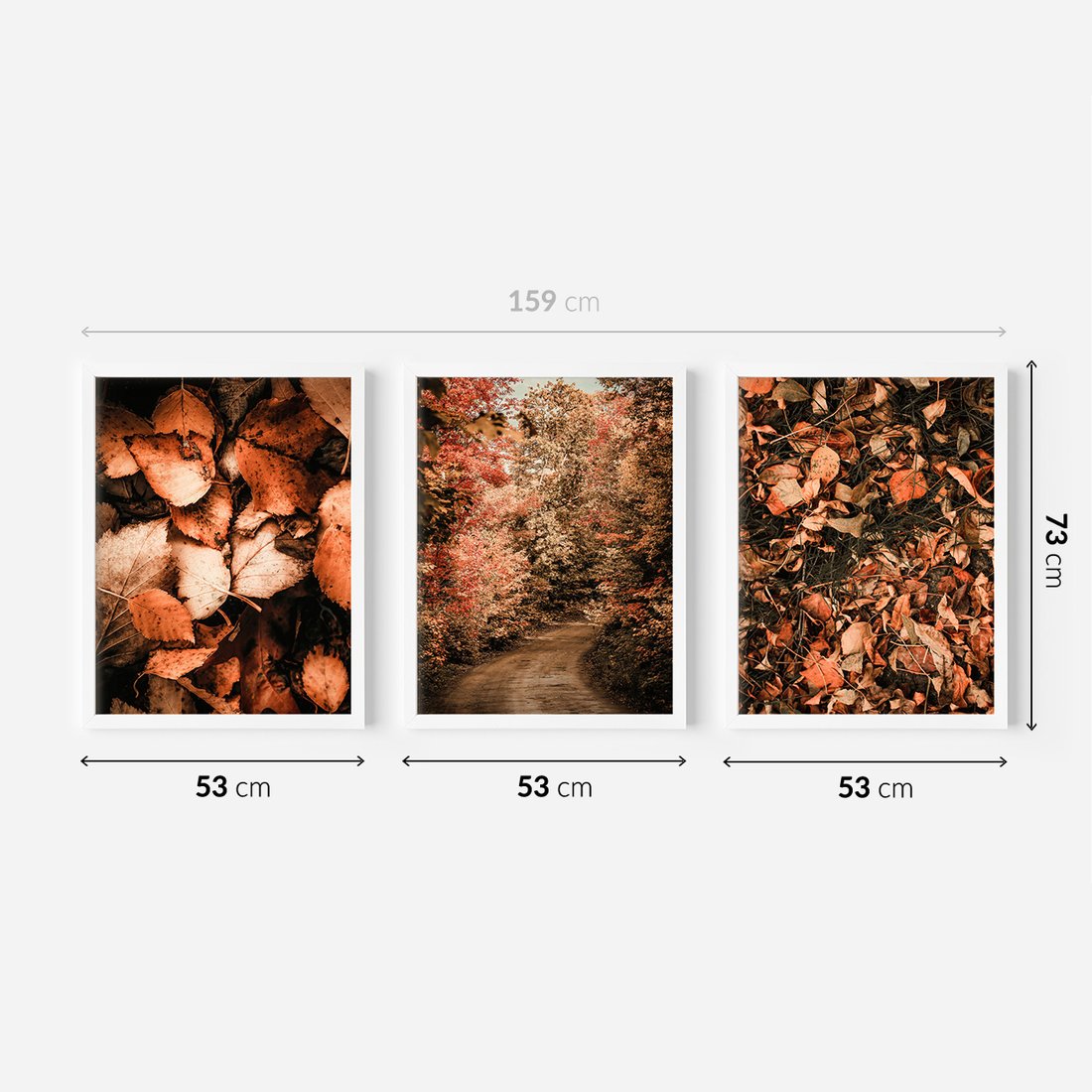 Zestaw obrazy w ramie 50x70 galeria - Liście, las, ścieżka - rama biała