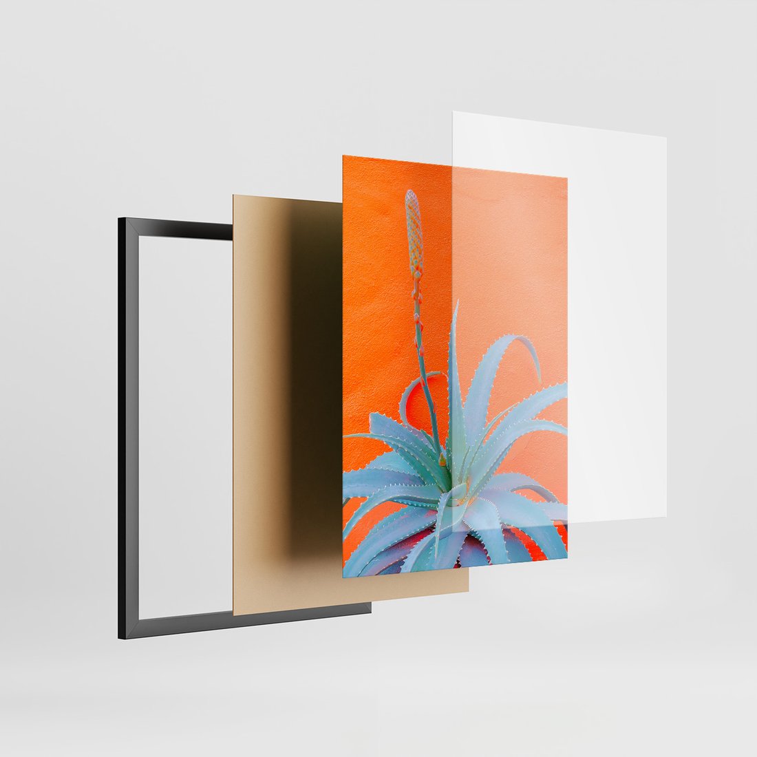 Zestaw obrazy w ramie 50x70 galeria - Liście, rośliny, energetyczne, neony - rama czarna