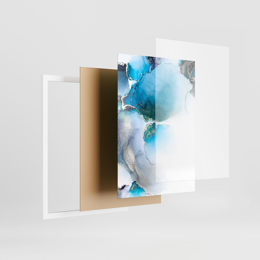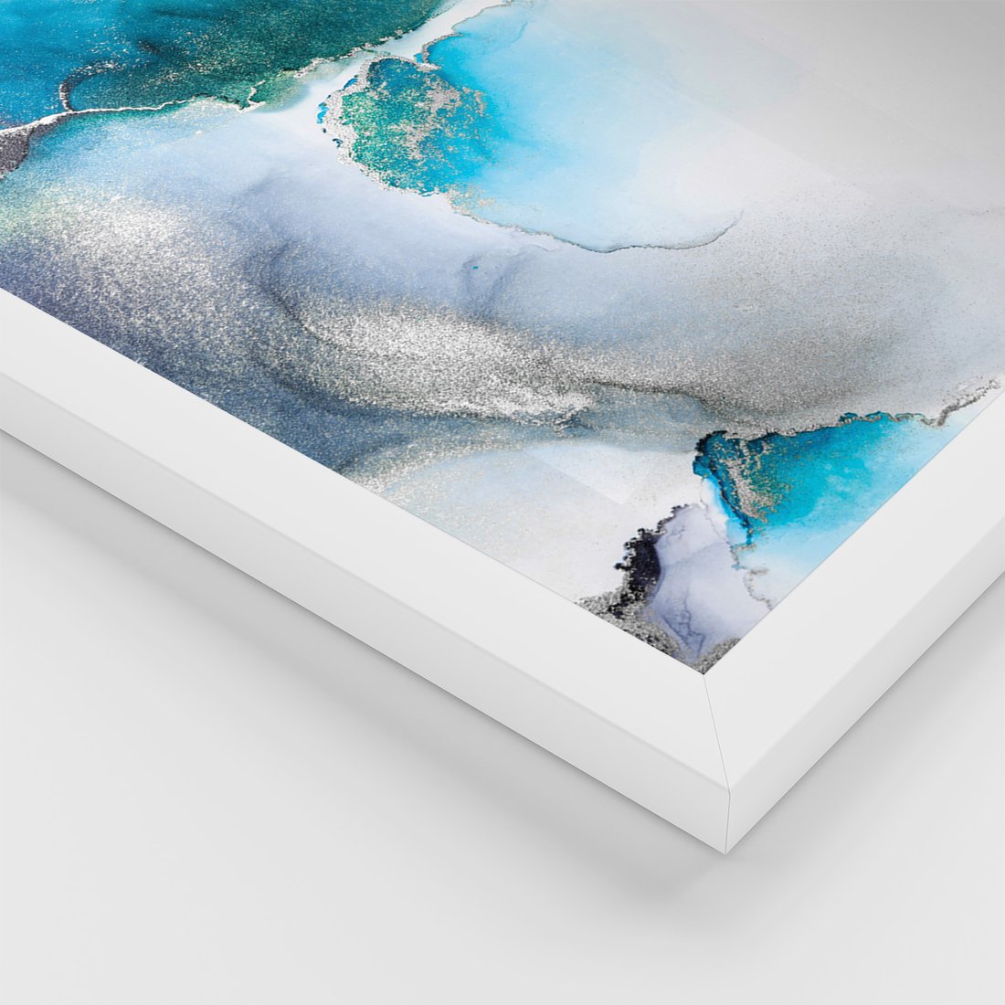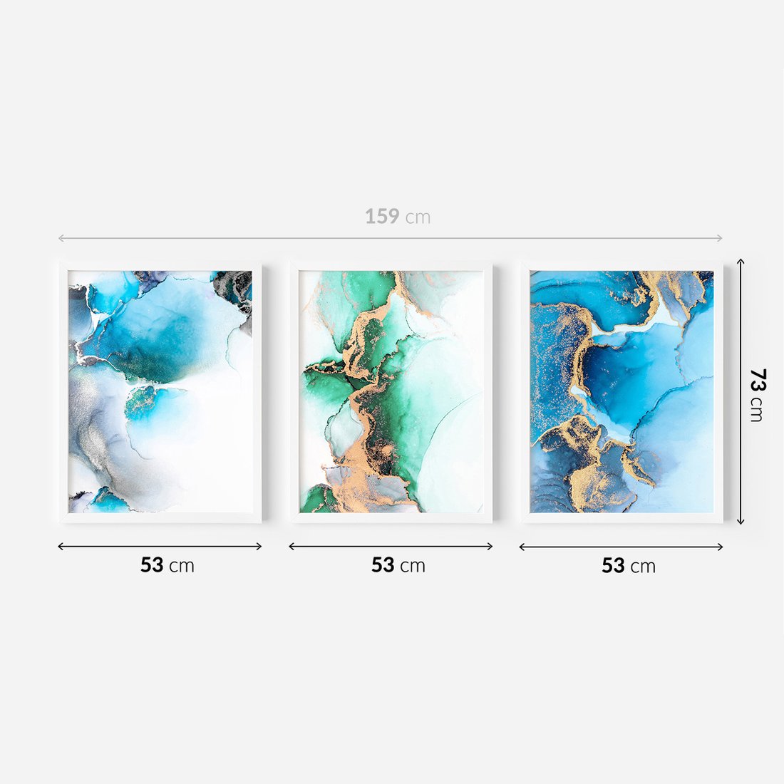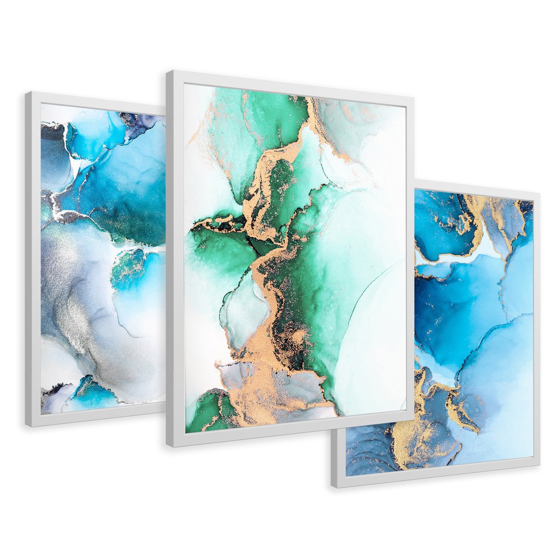 Zestaw obrazy w ramie 50x70 galeria - Marmur, złoto, morski, turkus - rama biała