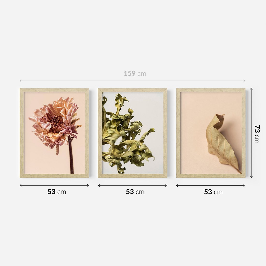 Zestaw obrazy w ramie 50x70 galeria - Minimalistyczne, suszone, kwiaty, boho - rama drewno
