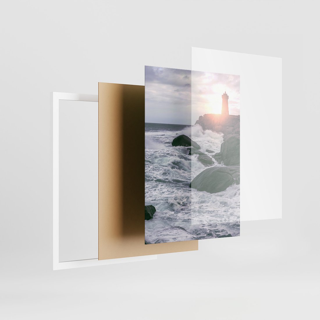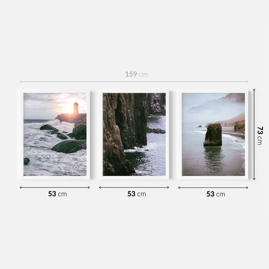 Zestaw obrazy w ramie 50x70 galeria - Morze, fale, latarnia, morska, zachód - rama biała