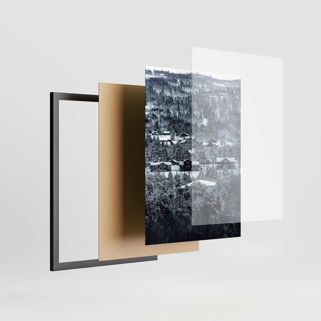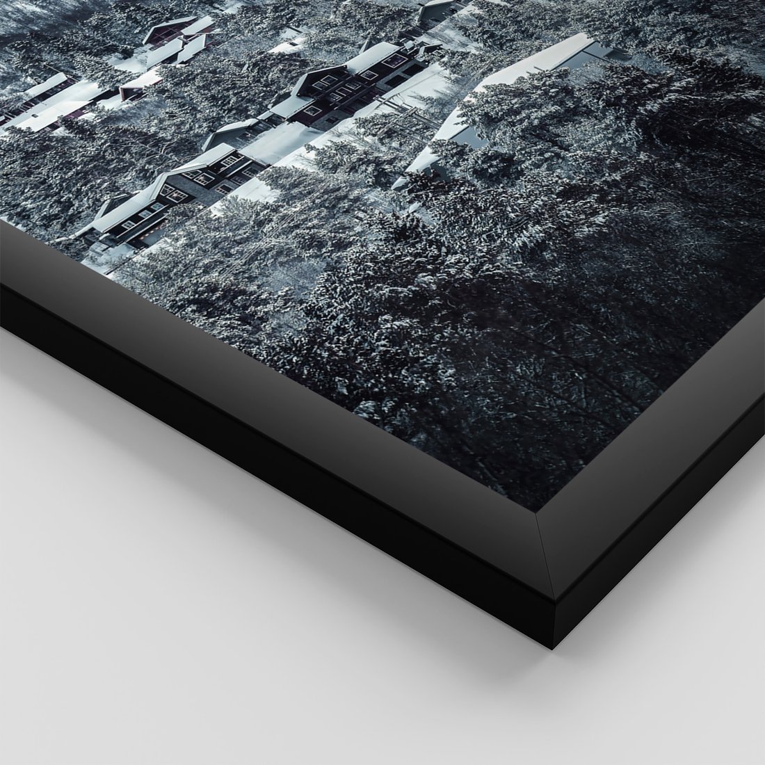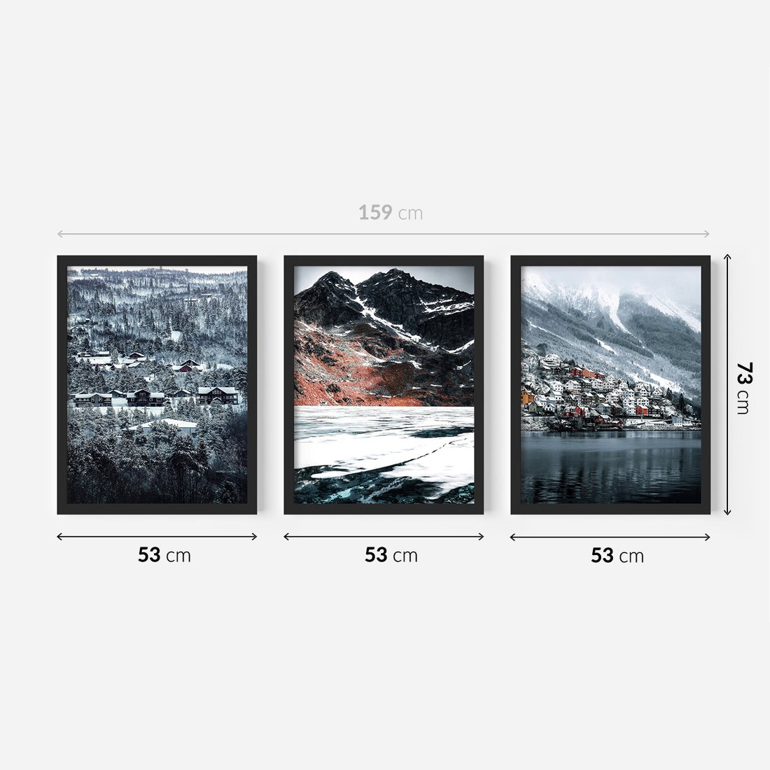 Zestaw obrazy w ramie 50x70 galeria - Norweskie, domki, góry, zima - rama czarna