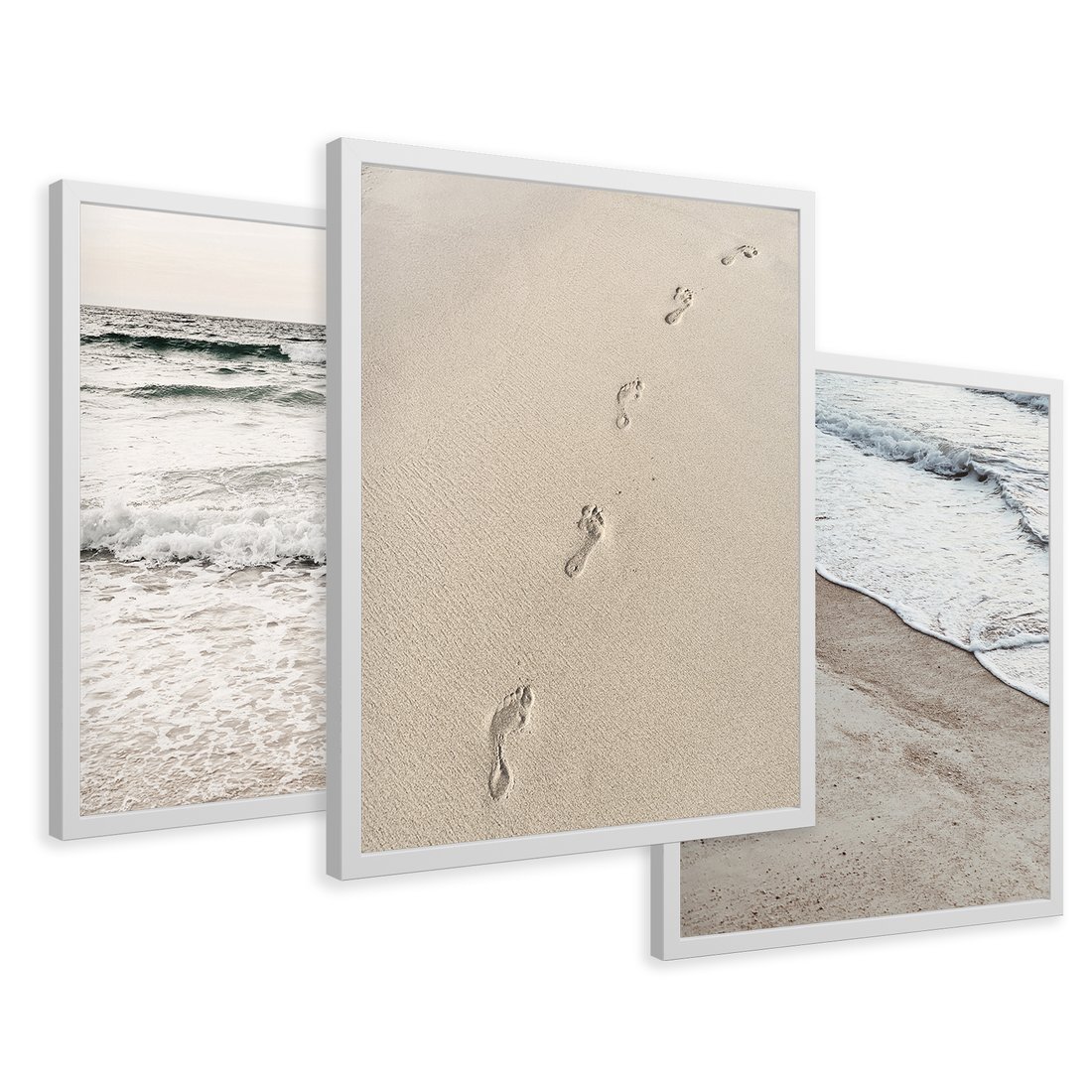Zestaw obrazy w ramie 50x70 galeria - Plaża, morze, piasek, ślady, stóp - rama biała