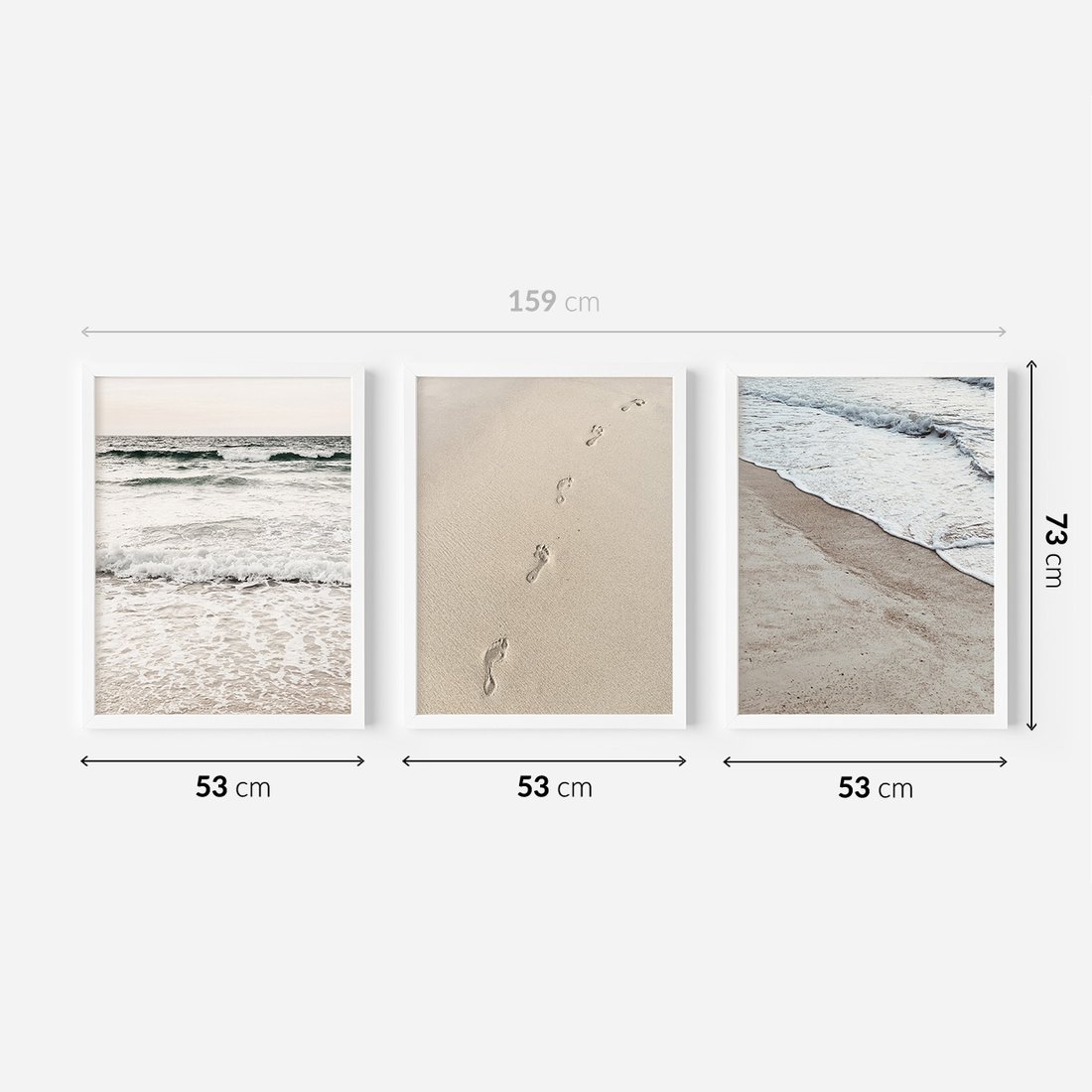 - Zestaw obrazów 50x70 - Plaża, morze, piasek, ślady, stóp