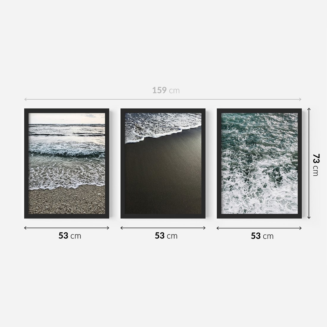 Zestaw obrazy w ramie 50x70 galeria - Plaża, morze, tryptyk - rama czarna
